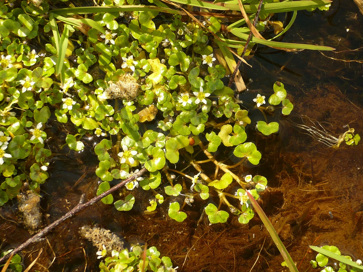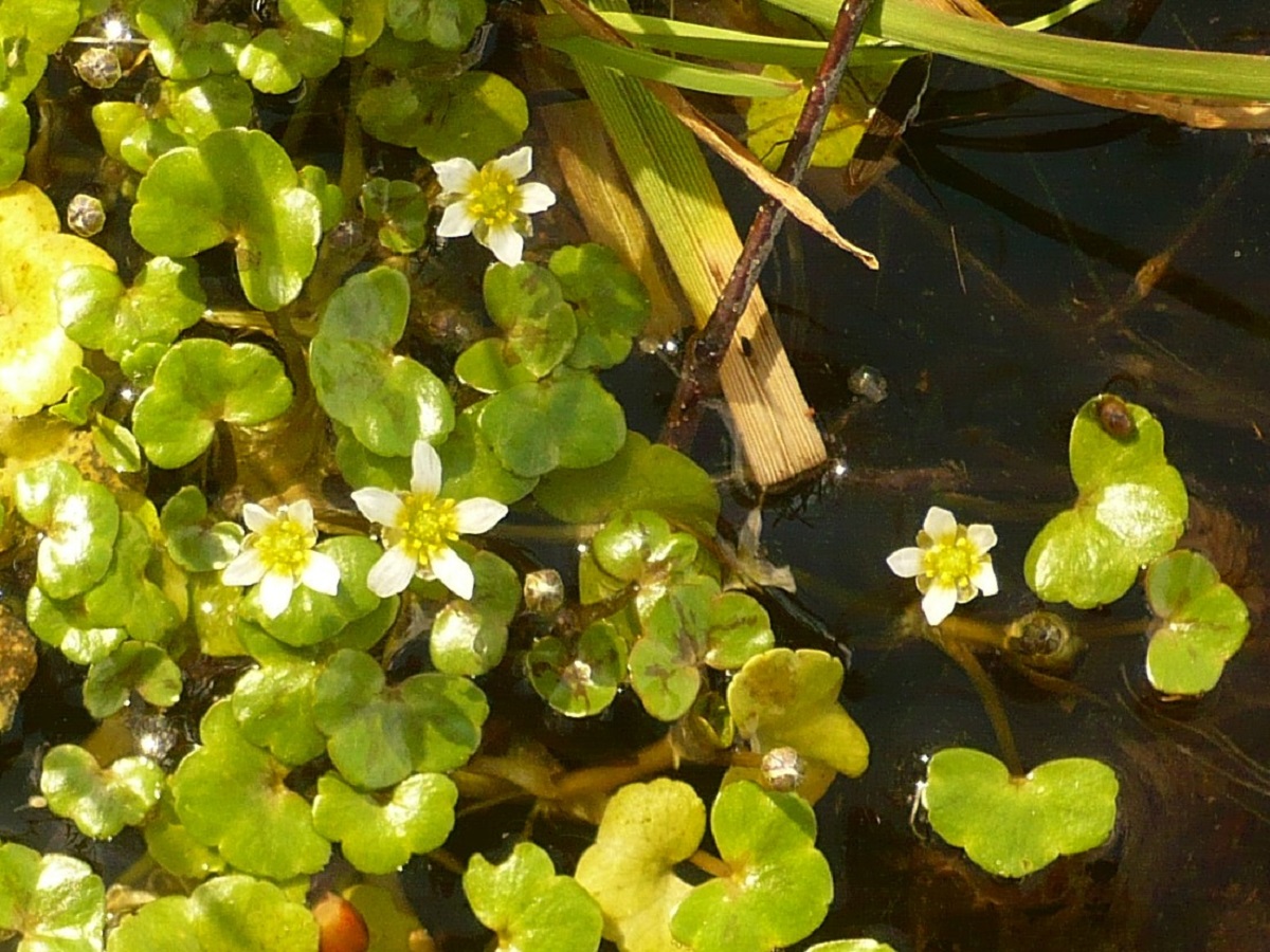 Hydr Hc – 0,5-3 dm – Feuilles flottantes réniformes trilobées, sans sinus marqué – Fleurs très petites à 5 pétales étroits blancs de L ≃ à celle des sépales, étamines 5-10 – Akènes glabres