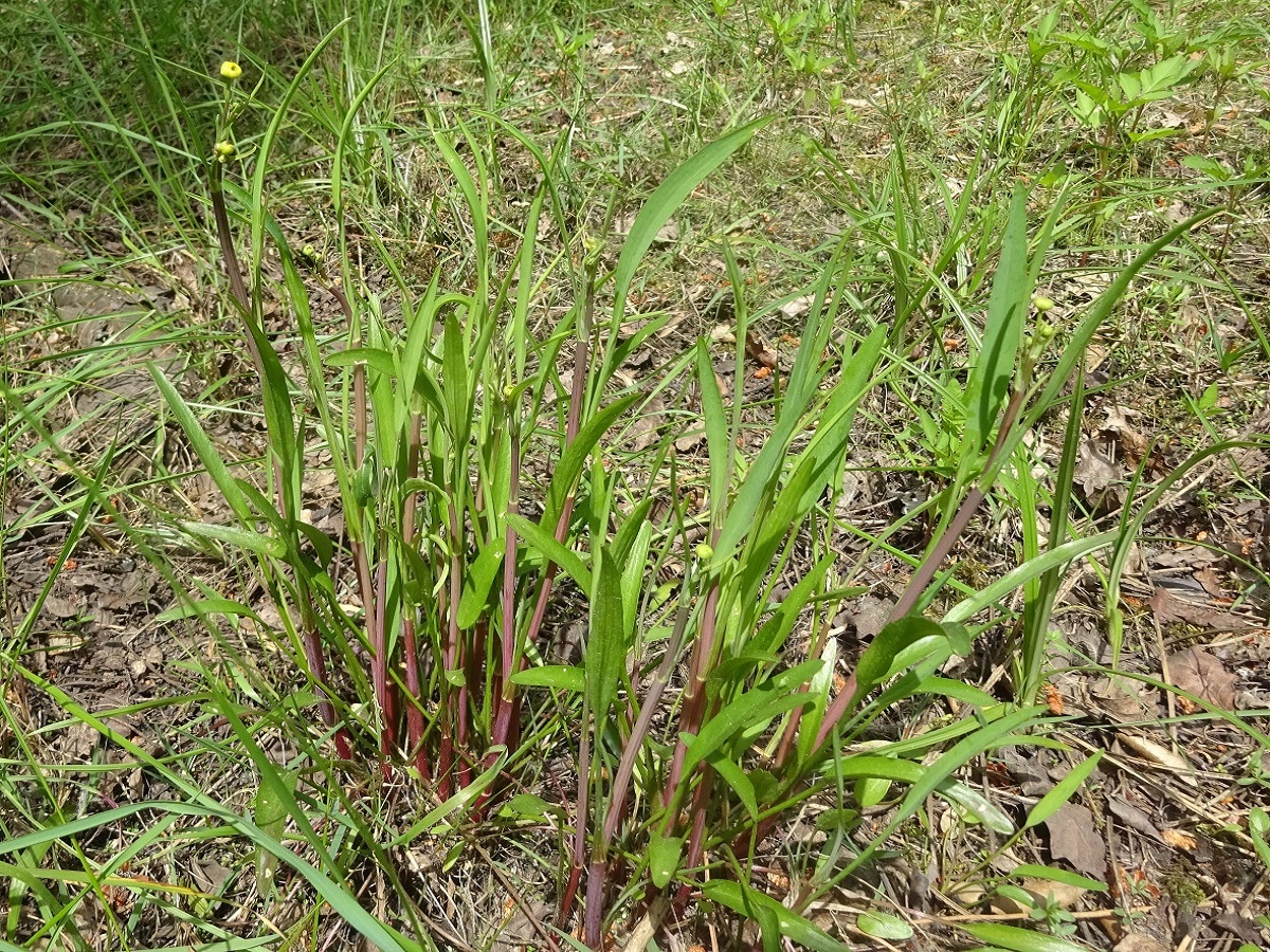 Th – 6-12 dm – Dressée robuste, feuilles étroitement lancéolées peu dentées, les < (L ≥ 10 cm) ± élargies – Fleurs en coupe de Ø ≃ 3 cm jaunes à sépales velus – Akène ≃ 3 mm lisse à bec fort