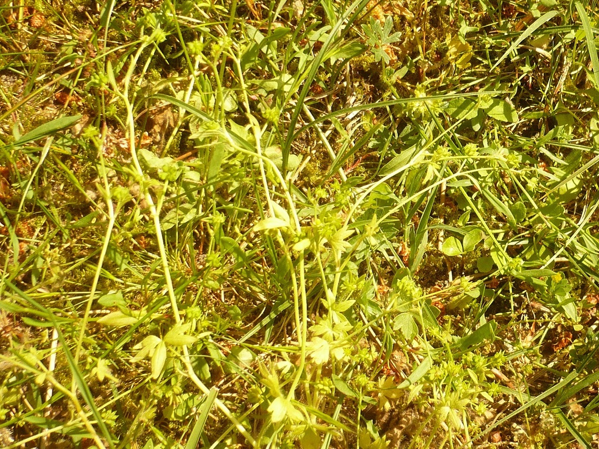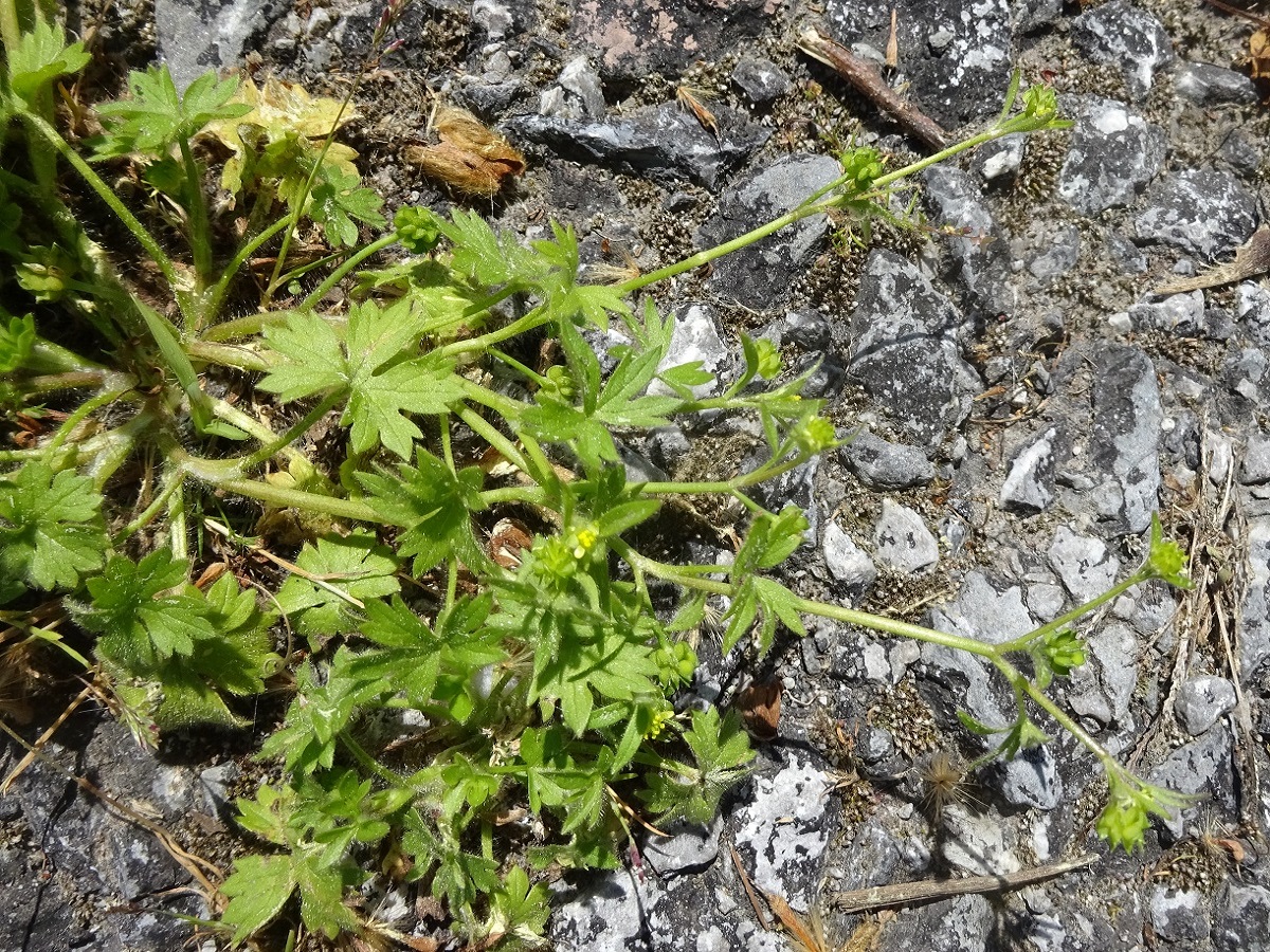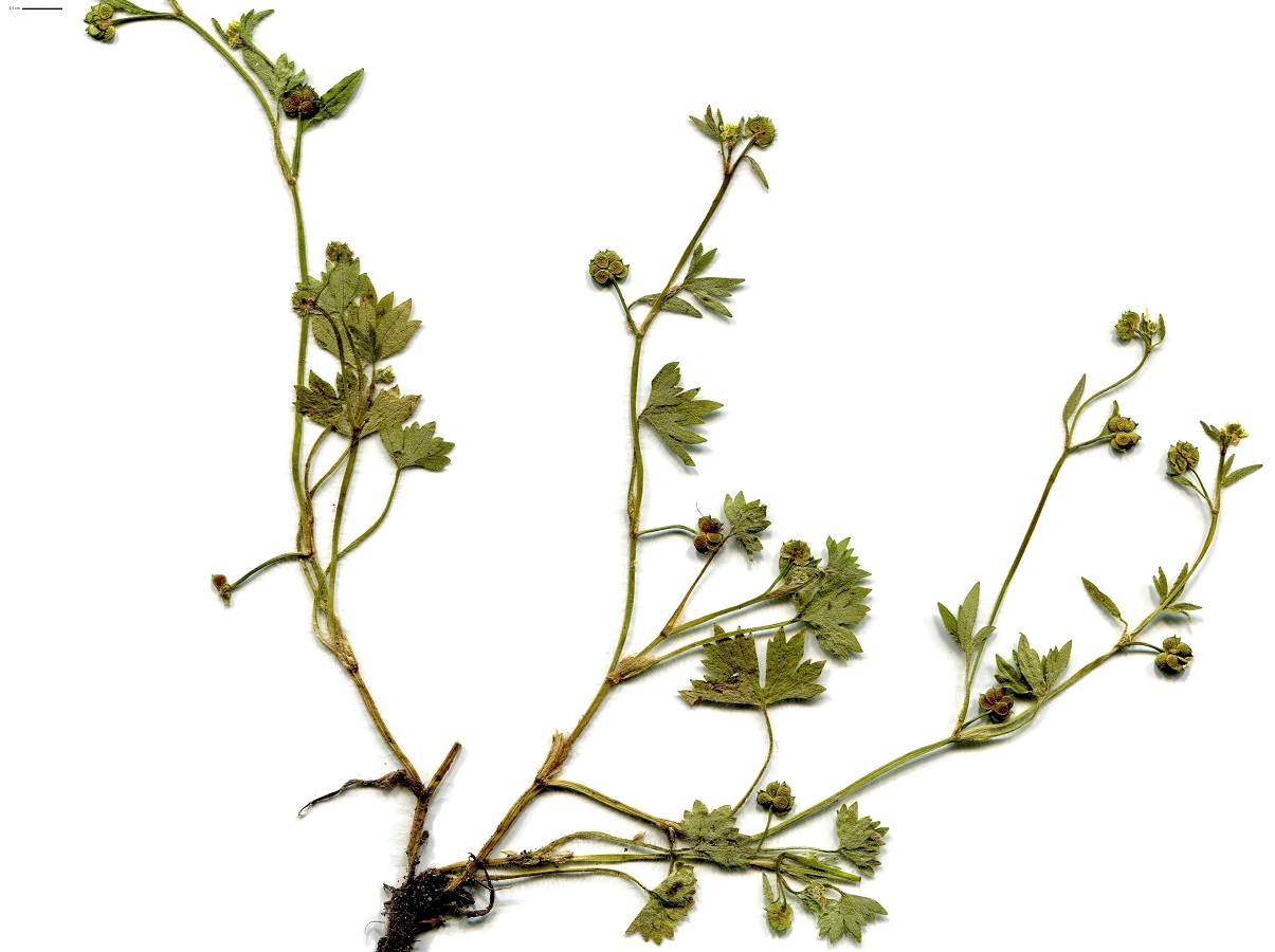 Th – 1-3 dm – Tiges flexueuses étalées, feuilles à 3-5 lobes crénelés peu profonds – Fleurs très petites à 5(ou –) pétales jaunes, à sépales réfléchis – Akène tuberculeux, à bec court