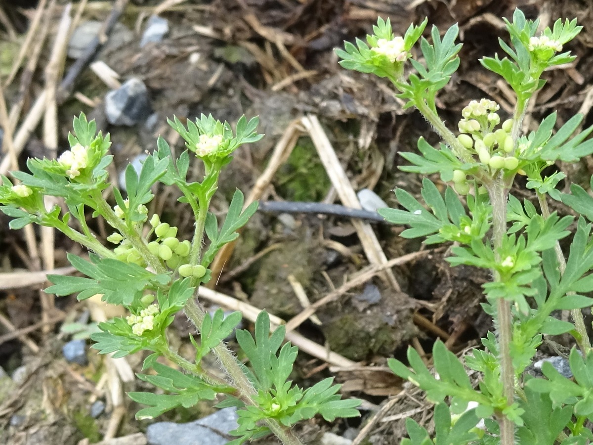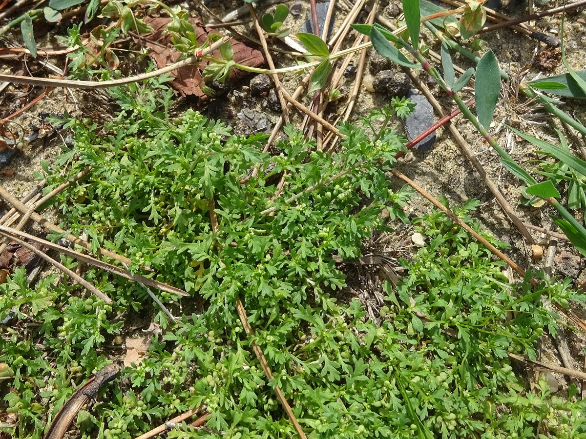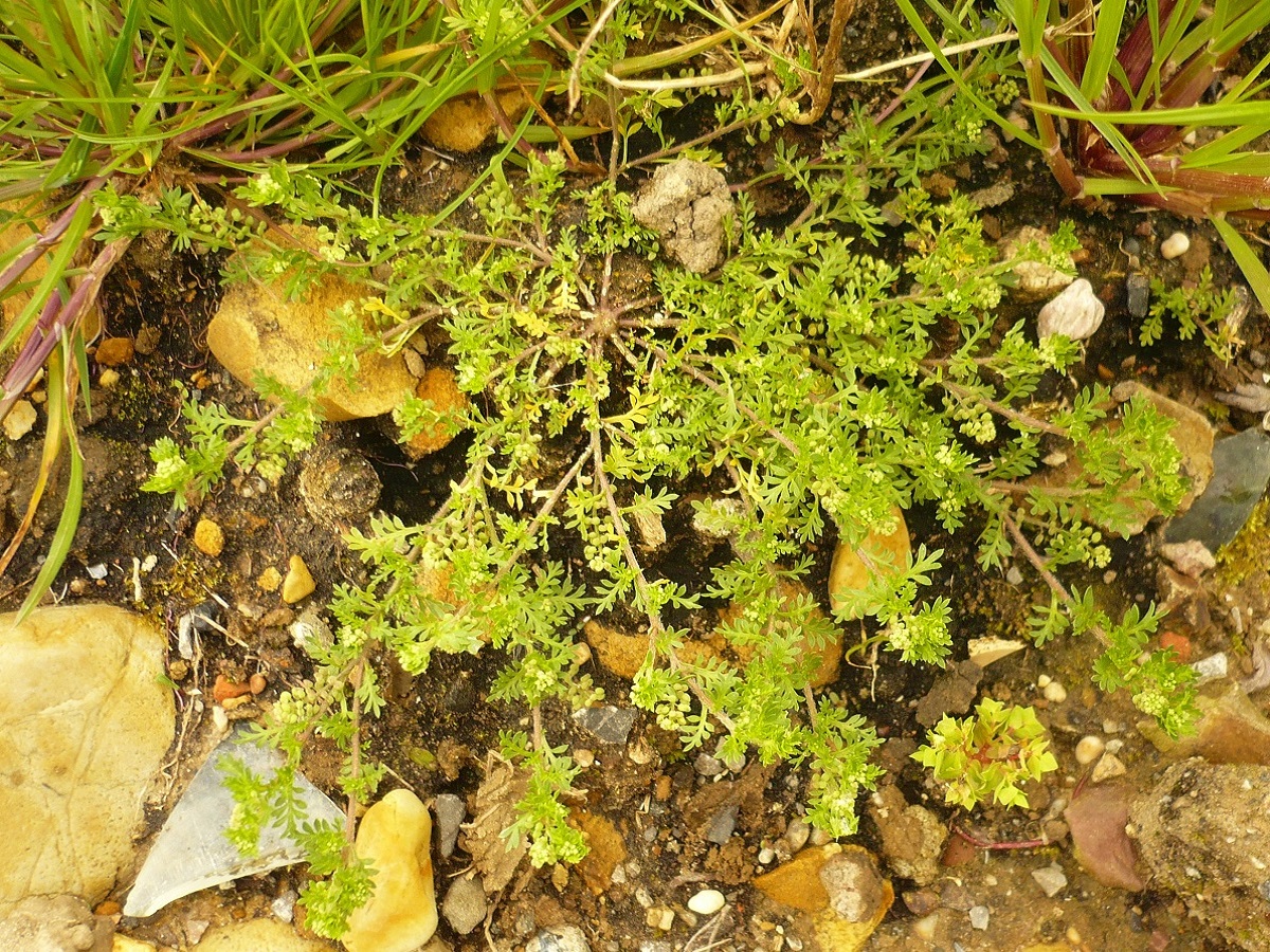 Th – 1-4 dm – Prostrée, gracile, feuilles pennatifides – Grappes courtes axillaires de petites fleurs à 4 pétales blanc jaunâtre < sépales – Silicules à apex échancré, réticulées
