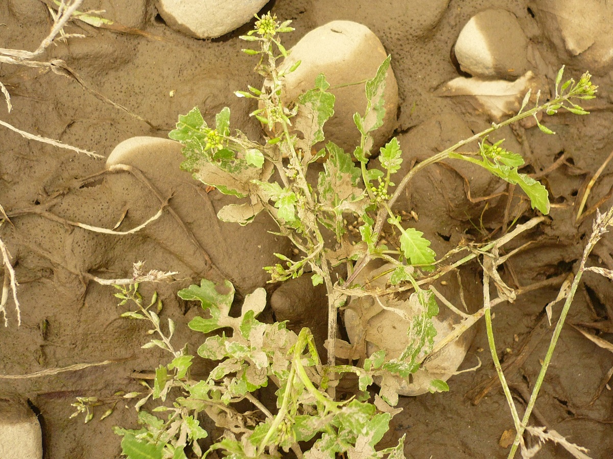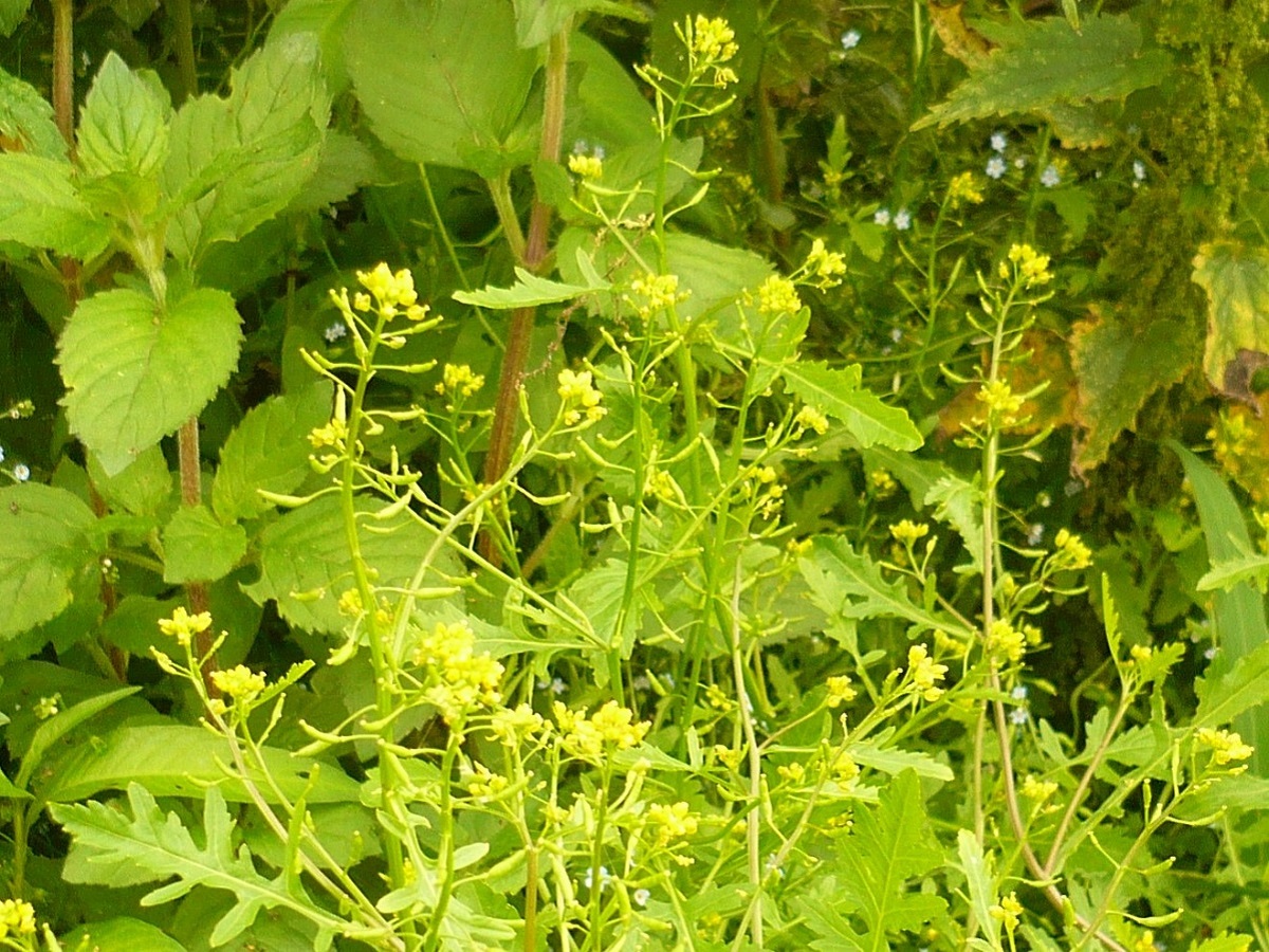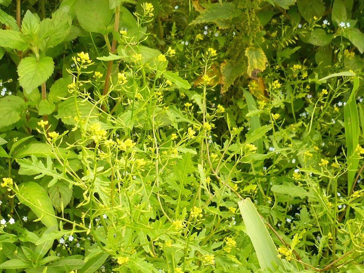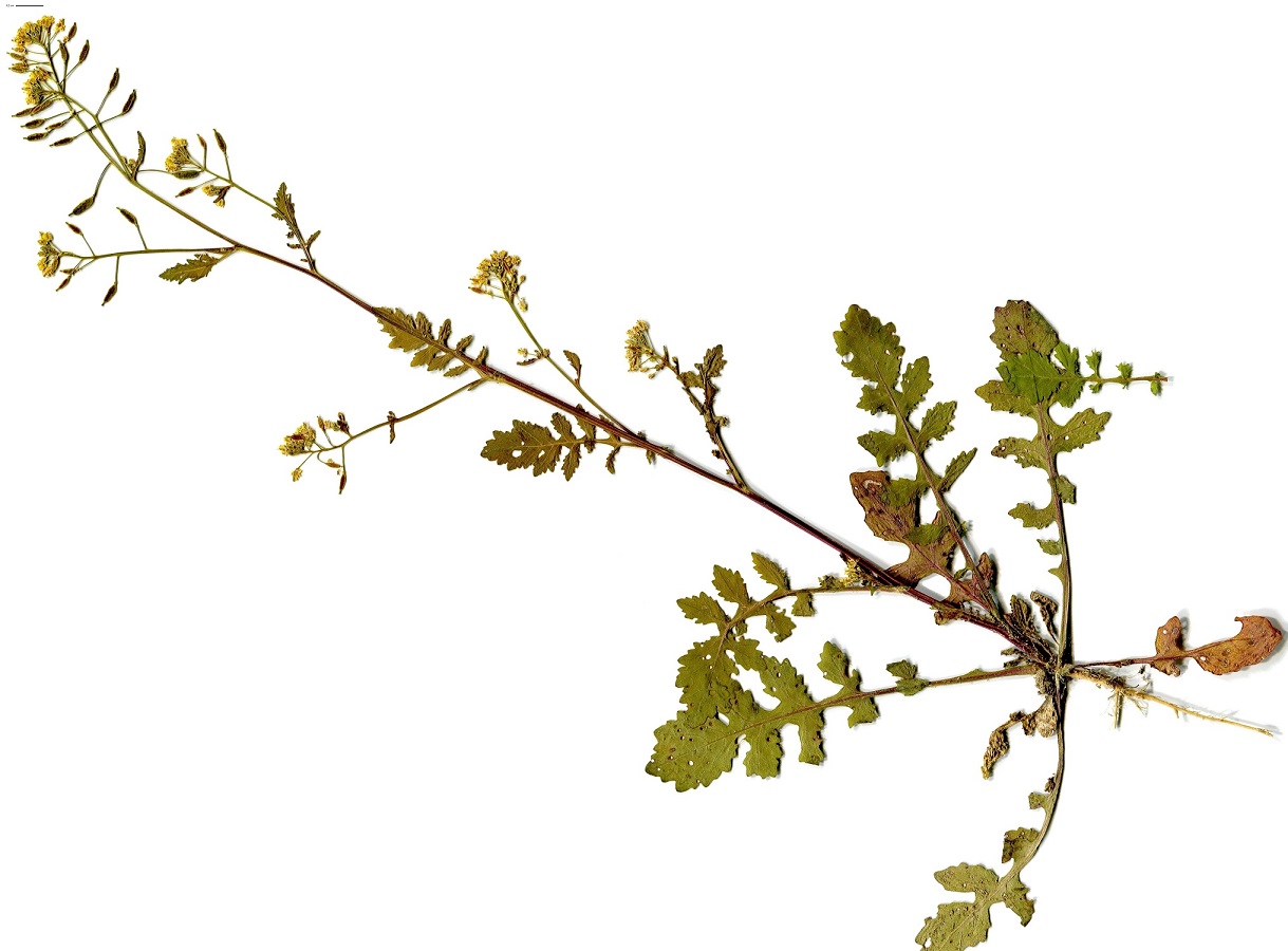Th – 1-5 dm – Grêle, feuilles < découpées en lobes dentés, le terminal + grand, les > auriculées – Grappes de petites fleurs à 4 pétales jaune pâle – Fruit court apiculé ≃ au pédicelle étalé