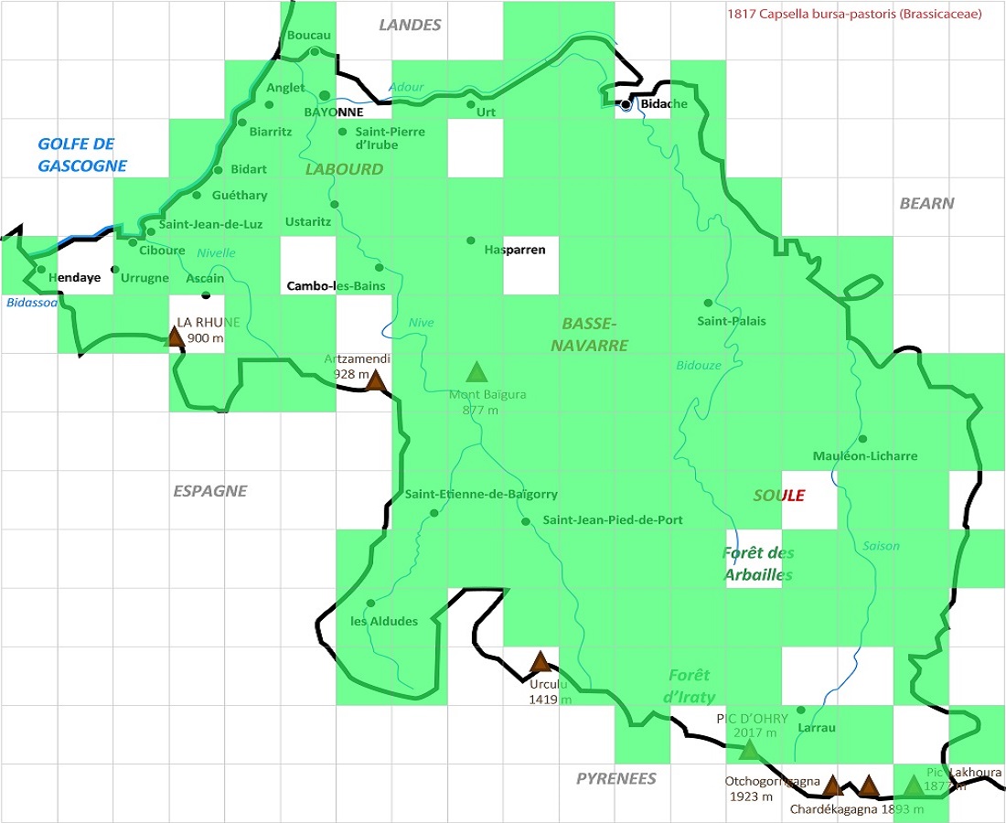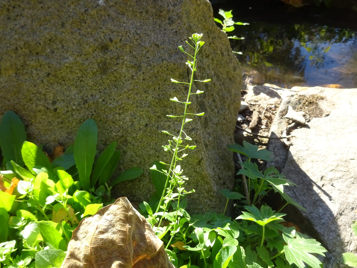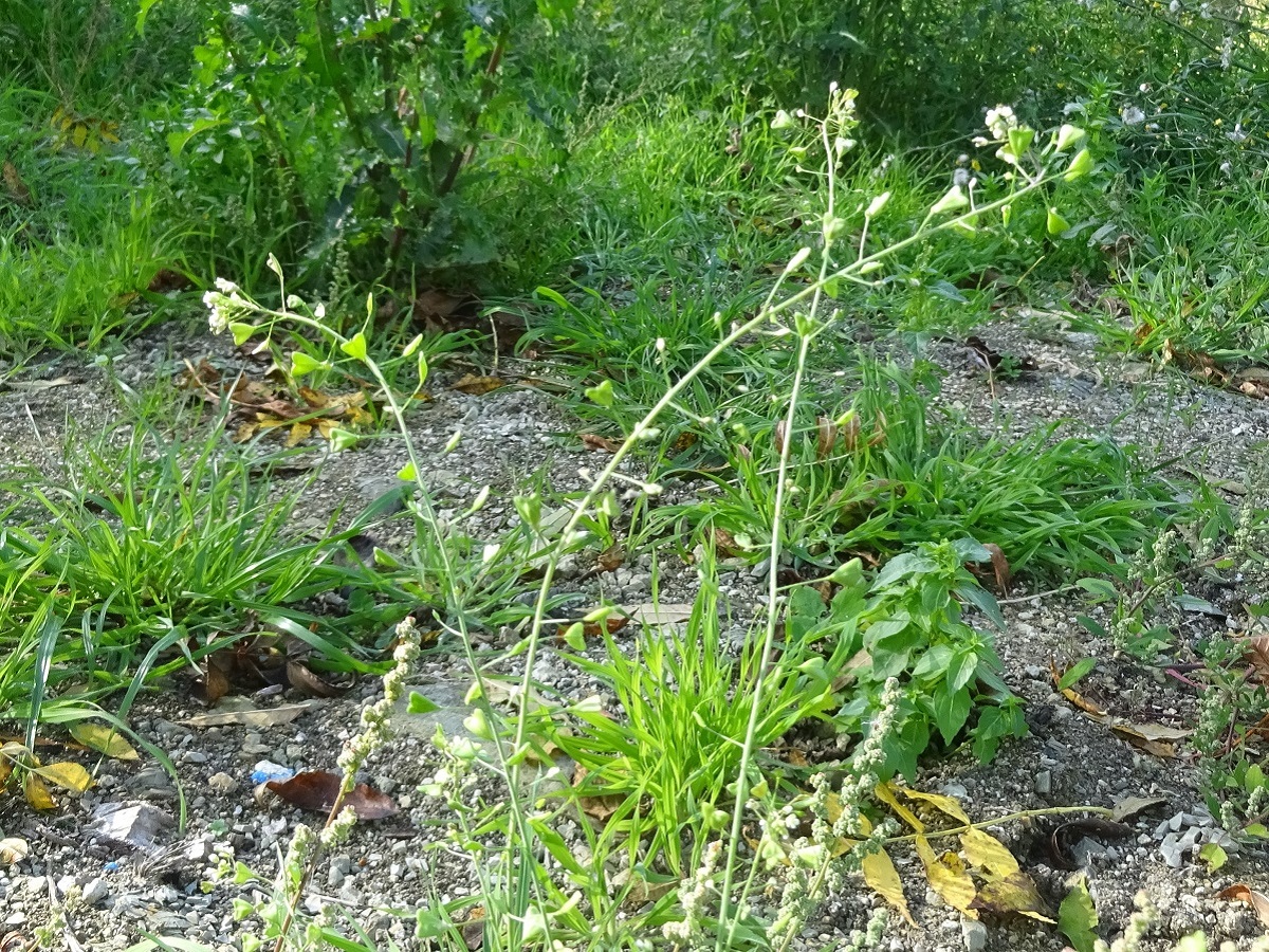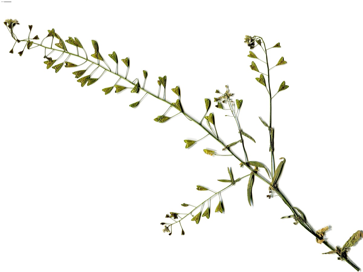 Th – 2-5 dm – Feuilles en rosette pennatifides, les > embrassantes – Fleurs à 4 petits pétales blancs, sépales verts – Silicules vertes aplaties, triangulaires-échancrées, marge droite à convexe