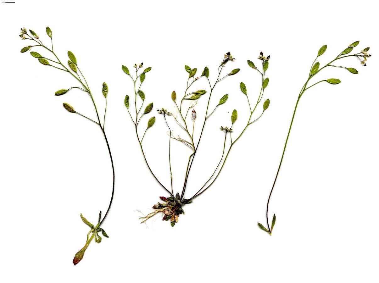 Th – 1-2 dm – Feuilles lancéolées-spatulées en rosette basale, à poils bifurqués – Fleurs à 4 pétales blancs bifides – Silicules ovales lancéolées, de 6-10 mm de long