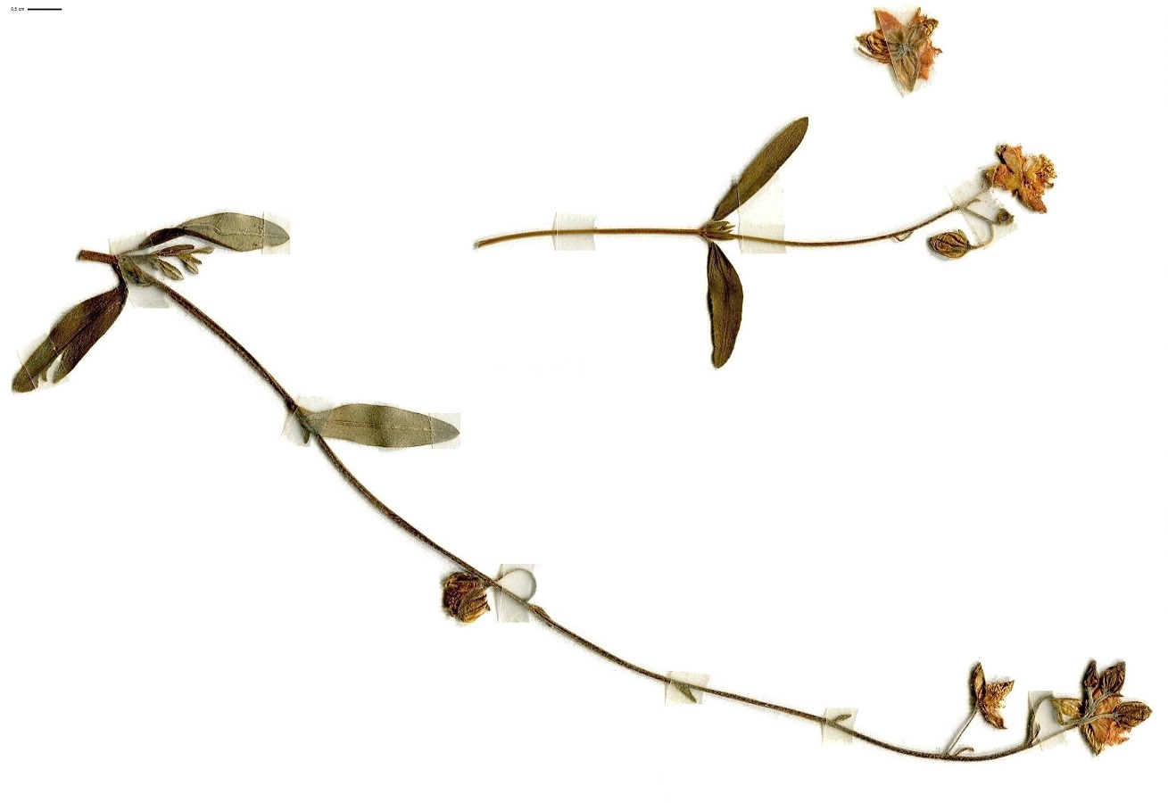 Ch – 1-3 dm – Feuilles opposées oblongues lancéolées ~ planes, envers ± tomenteux, stipules lancéolées ciliées – Fleurs de Ø ≃ 2,5 cm à 5 pétales jaunes, calice velu – Capsule ovoïde velue