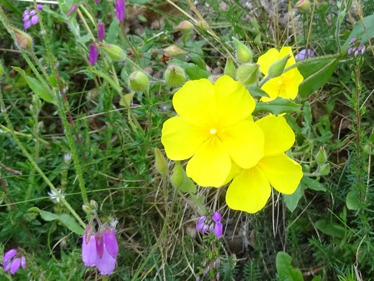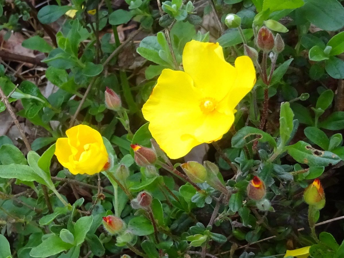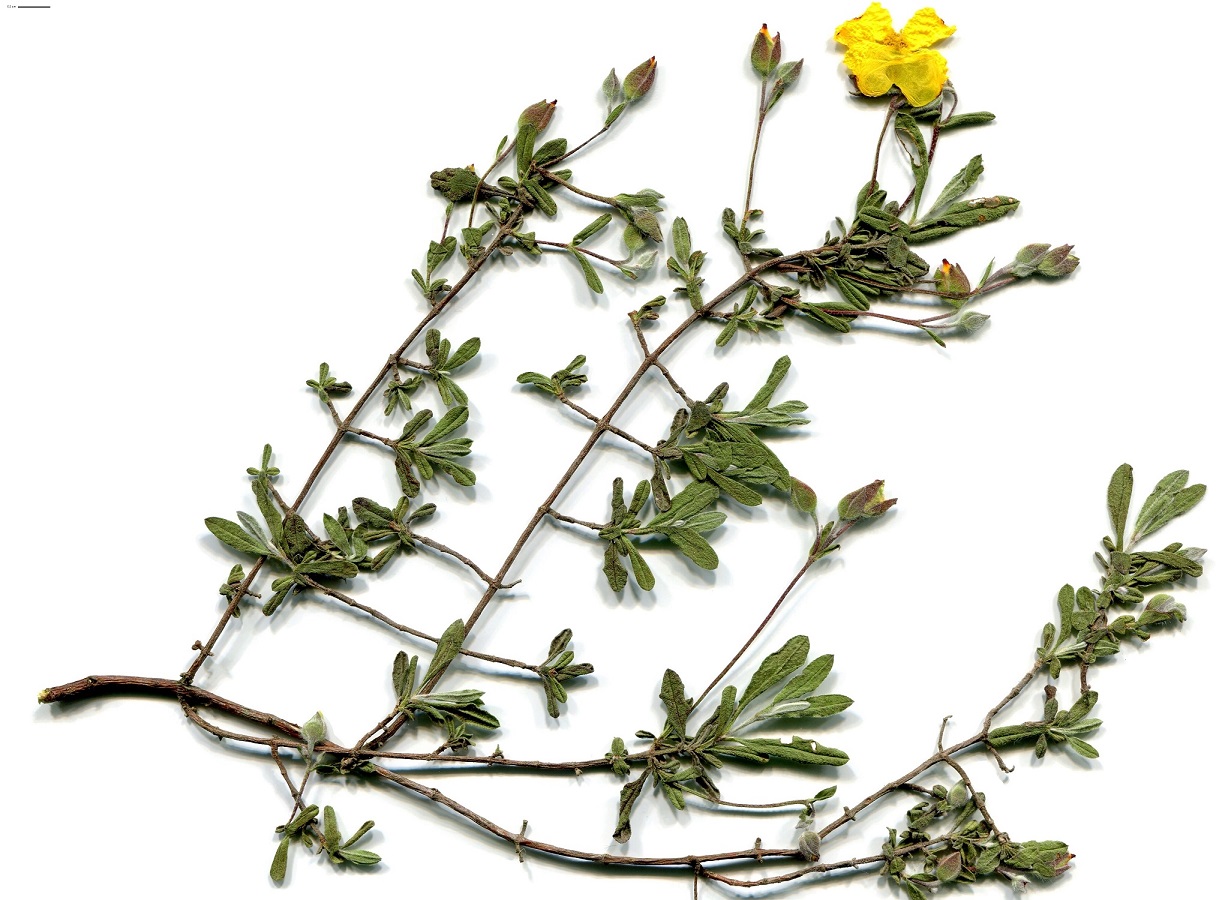 Ch/NPh – 3-6 dm – Feuilles ovales petites, velues grisâtres, à forte nervure, opposées – Cyme pauciflore de grandes fleurs de Ø 3-4 cm, à 5 pétales jaunes, 3 sépales – Capsule ovoïde trigone