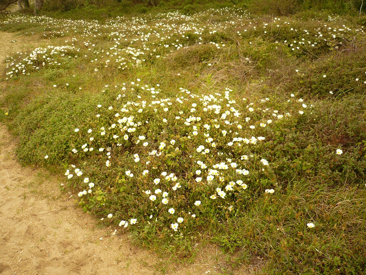 Ch/NPh – 3-6 dm – Petites feuilles ovales, opposées, gaufrées – Cyme de 1-2 grandes fleurs de Ø 4-5 cm à 5 pétales blancs et 5 sépales dont 2 ovales en coeur – Capsule entièrement velue