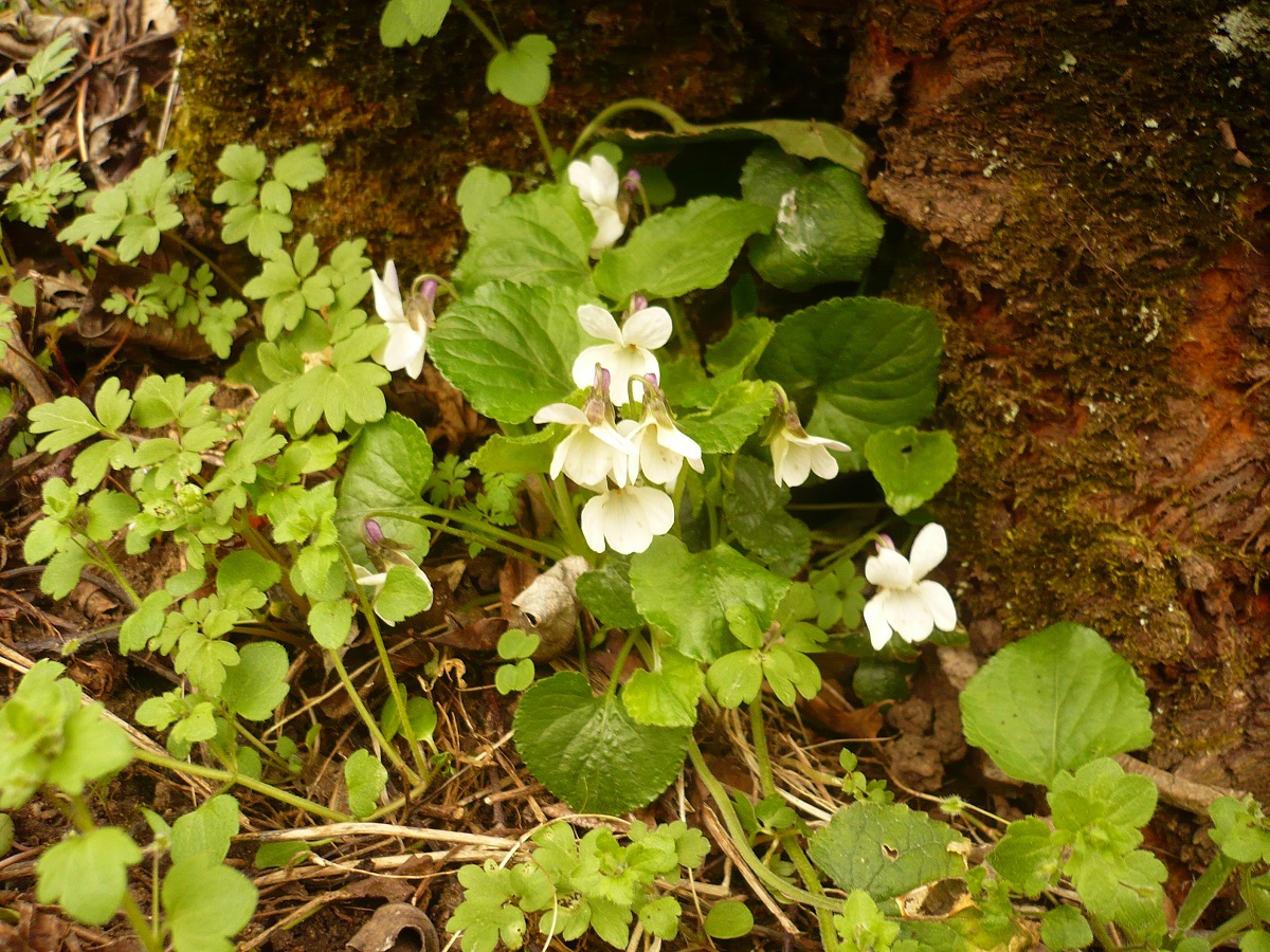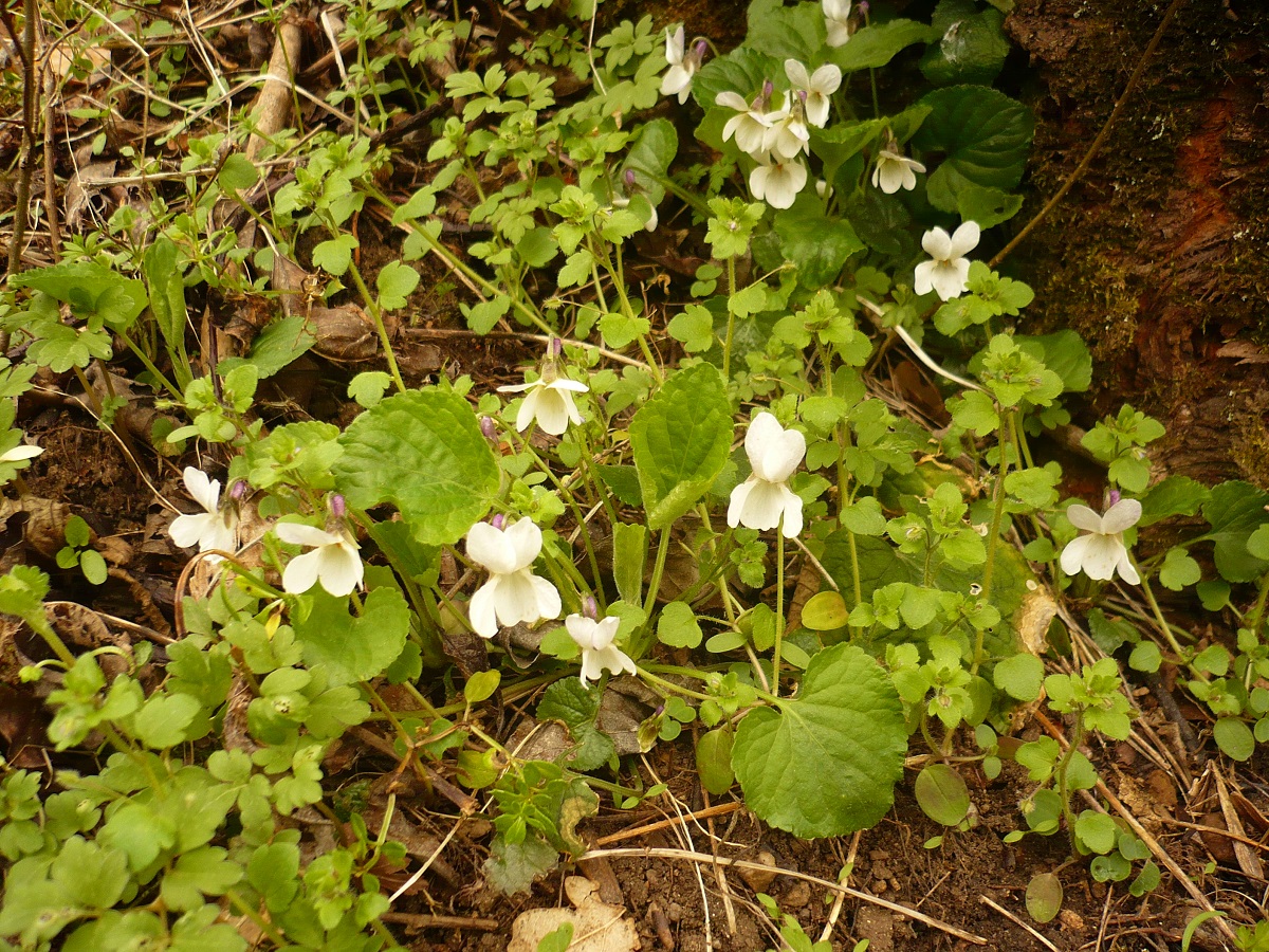 Hc – 0,5-1,5 dm – Stolonifère, feuilles vertes toutes radicales ± arrondies en coeur, finement crénelées, stipules larges à franges courtes – Fleurs blanches à éperon violacé, odorantes