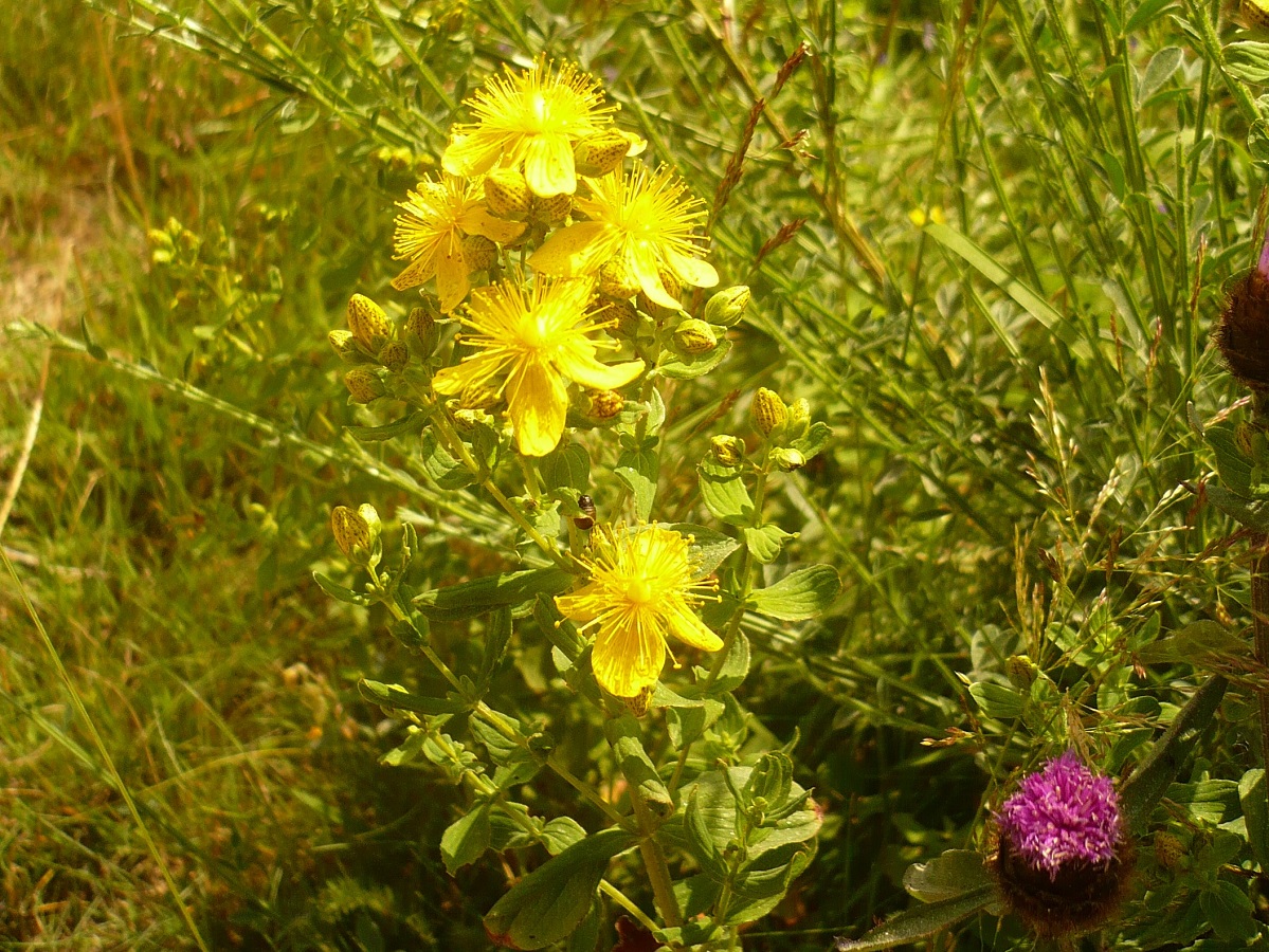 Hc – 2-5 dm – Tige à 4 côtes, ramifiée en haut, feuilles opposées elliptiques à glandes translucides – Assez grandes fleurs à 5 pétales jaunes à glandes noires, sépales obtus entiers à l’apex
