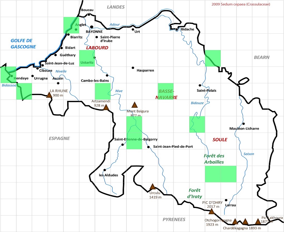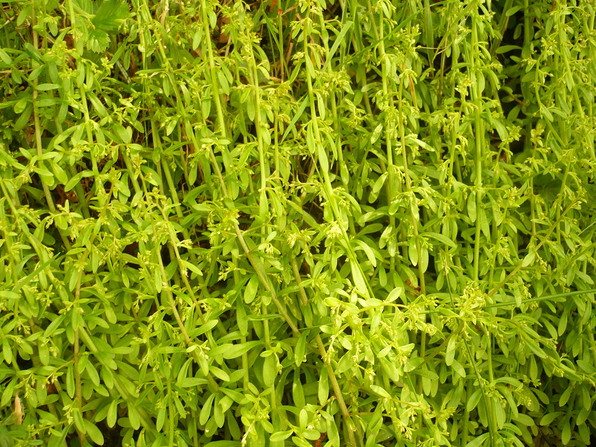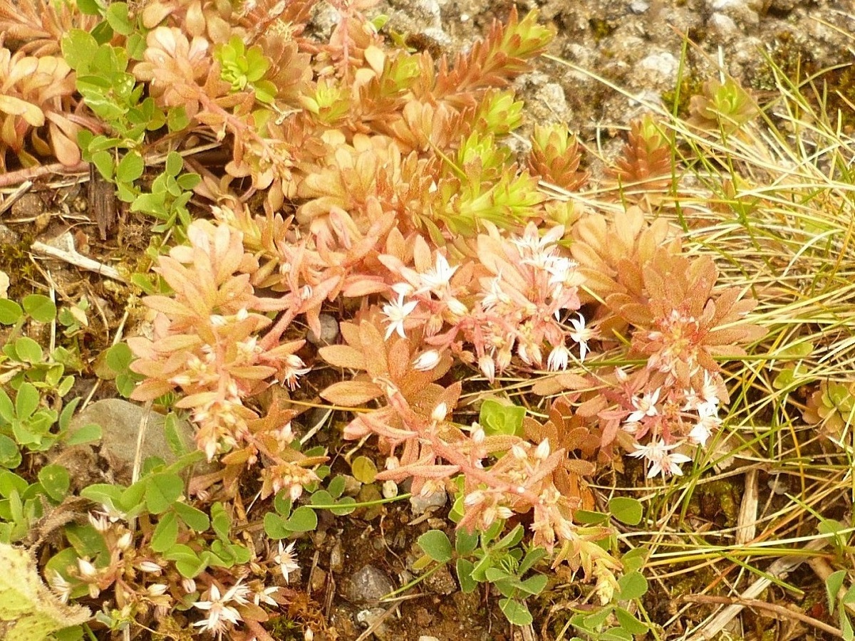 Th – 1-4 dm – Feuilles charnues aplaties spatulées, opposées ou verticillées – Longue inflorescence de petites fleurs à 5 pétales blancs, 10 étamines – Carpelles ovoïdes acuminés dressés