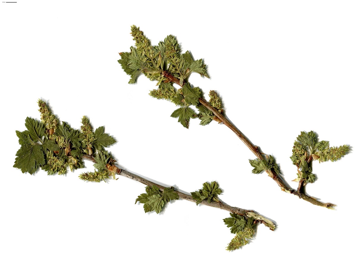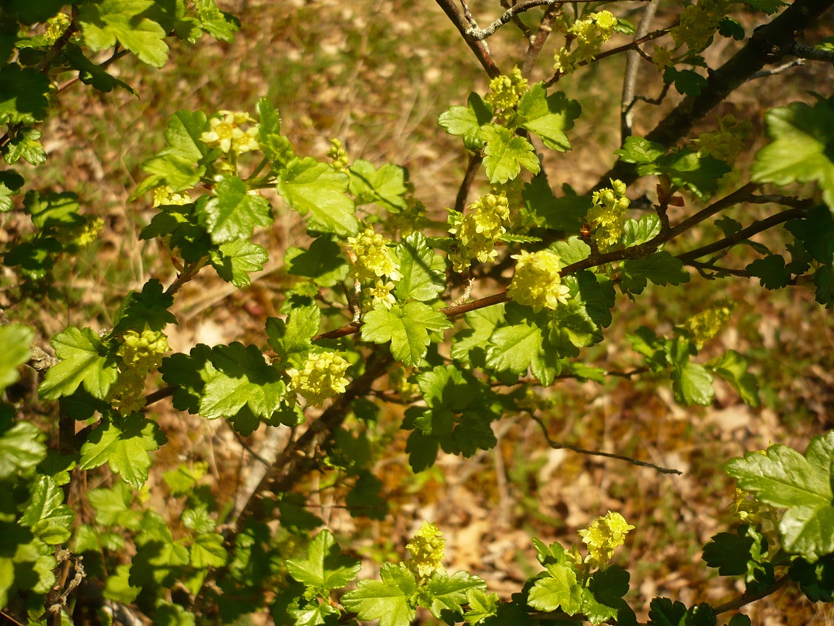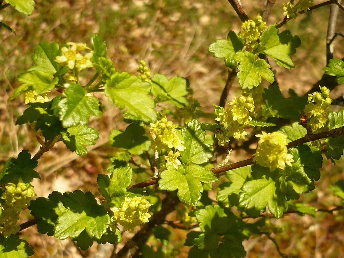 NPh – 0,5-1,5 m – Feuilles petites à 3-5 lobes obtus incisés – Grappes érigées de petites fleurs ♂ ou ♀ à 5 pétales jaunâtres, à calice soudé à la base – Petites baies rouges