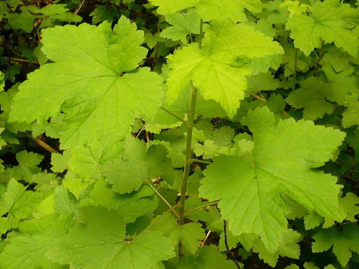 NPh – 1-1,5 m – Feuilles grandes 3-5-palmatilobées, à dents obtuses – Grappes de fleurs 5 pétales jaunâtres, à calice aplati en disque, anthères à loges écartées – Baie rouge ou jaunâtre