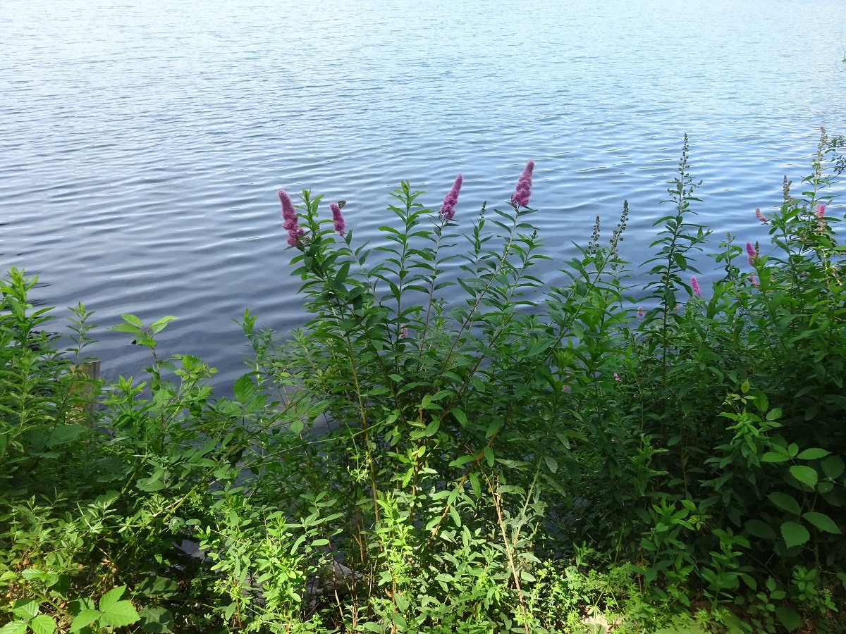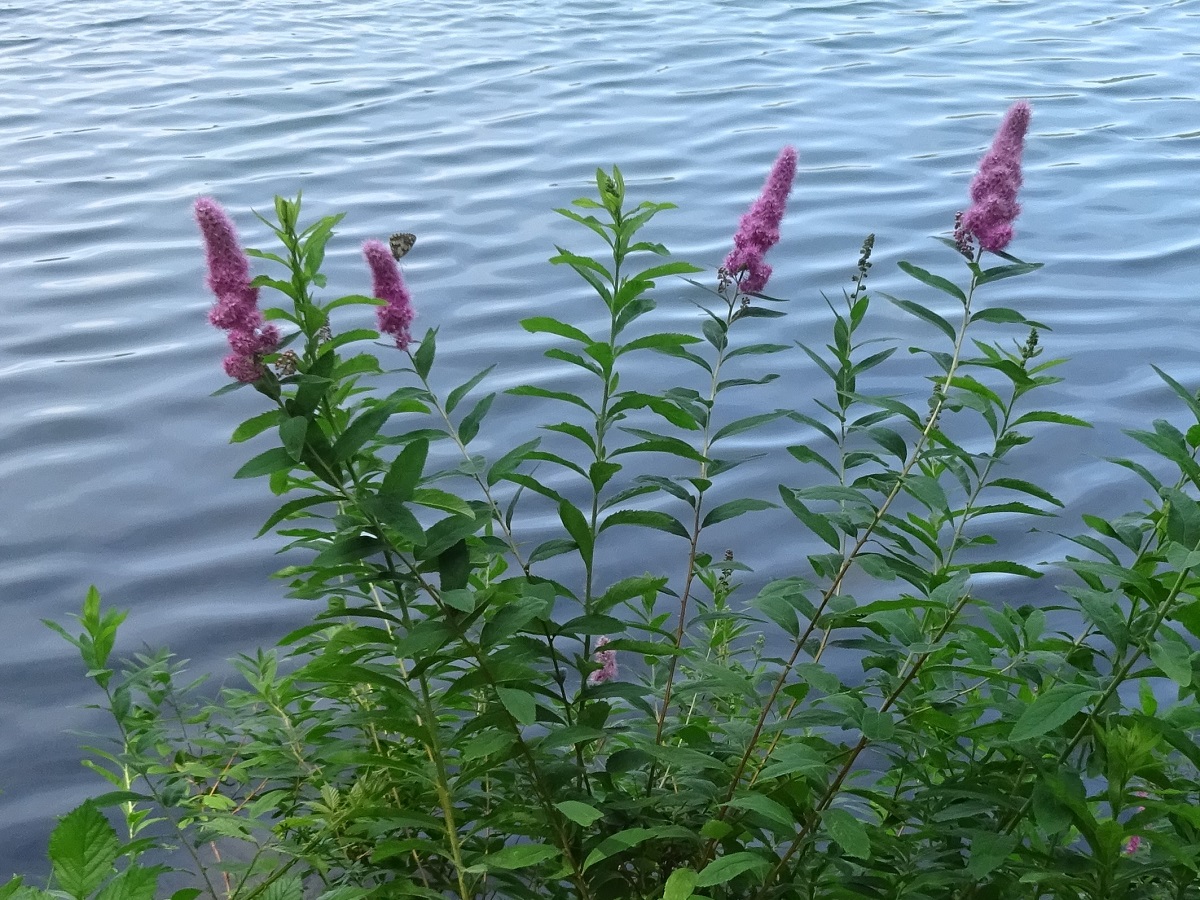 NPh – 1-2 m – Feuilles oblongues-lancéolées, dentées au moins dans la moitié apicale, vertes dessous – Panicules ± cylindriques denses de petites fleurs rosées, à 5 pétales < aux étamines