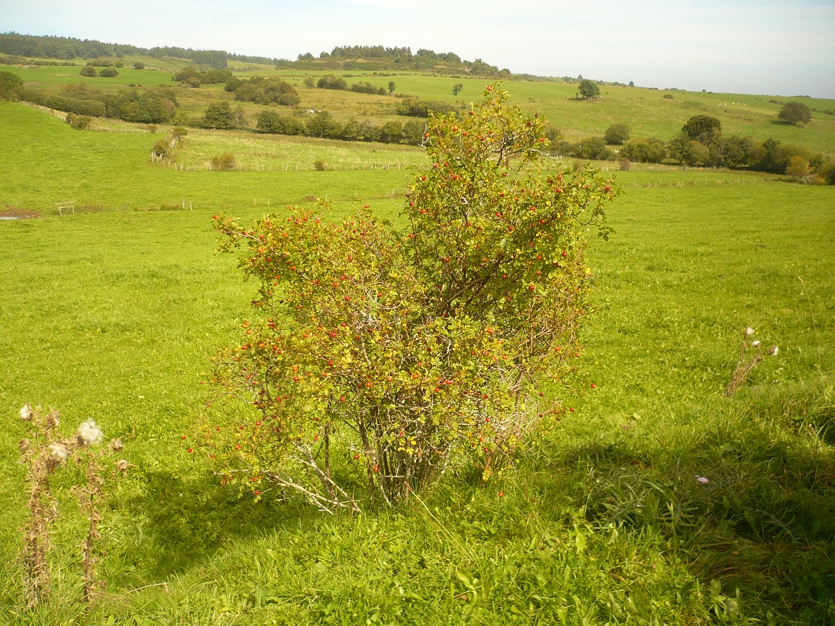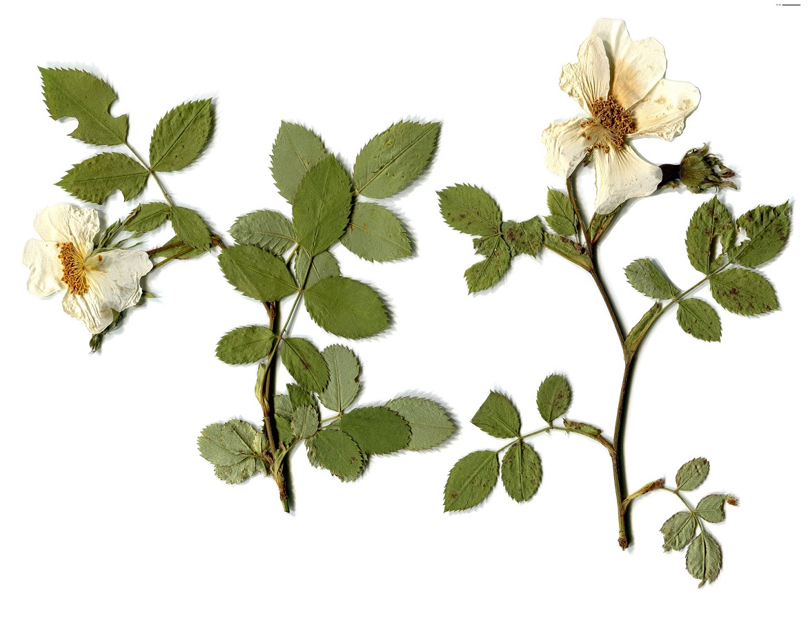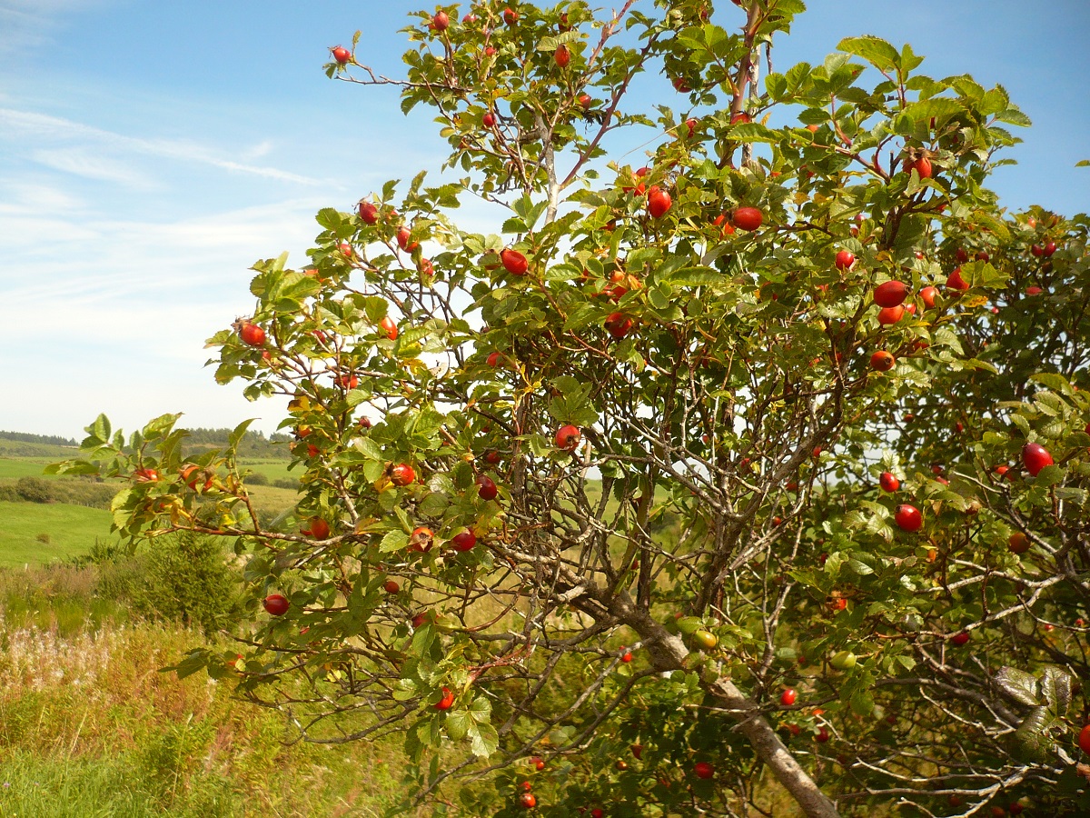 NPh – 1-3 m – Aiguillons arqués, 5-7 folioles à dents simples, rachis ± glanduleux – Fleurs de Ø 4-8 cm, à 5 pétales ± roses, sépales réfléchis, caducs – ’’Fruit’’ rouge à pédicelle glanduleux
