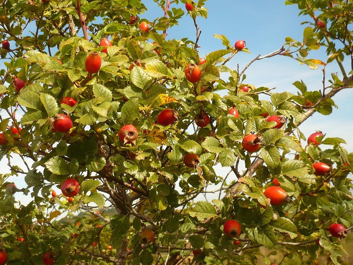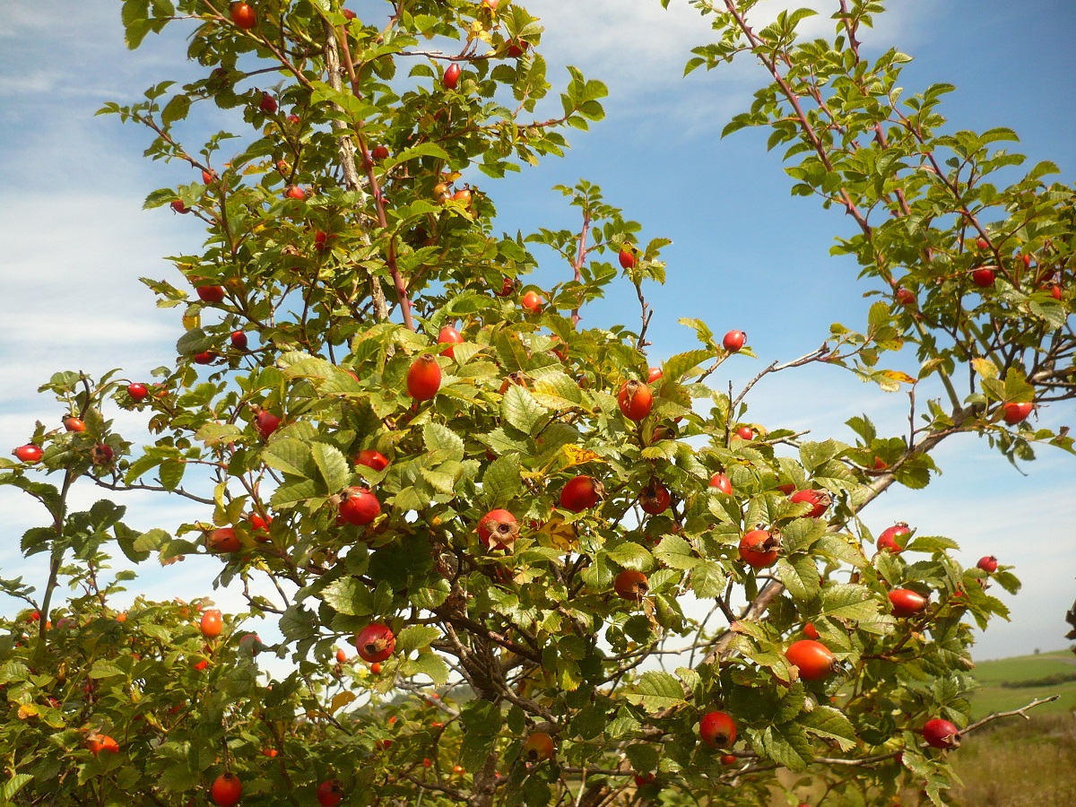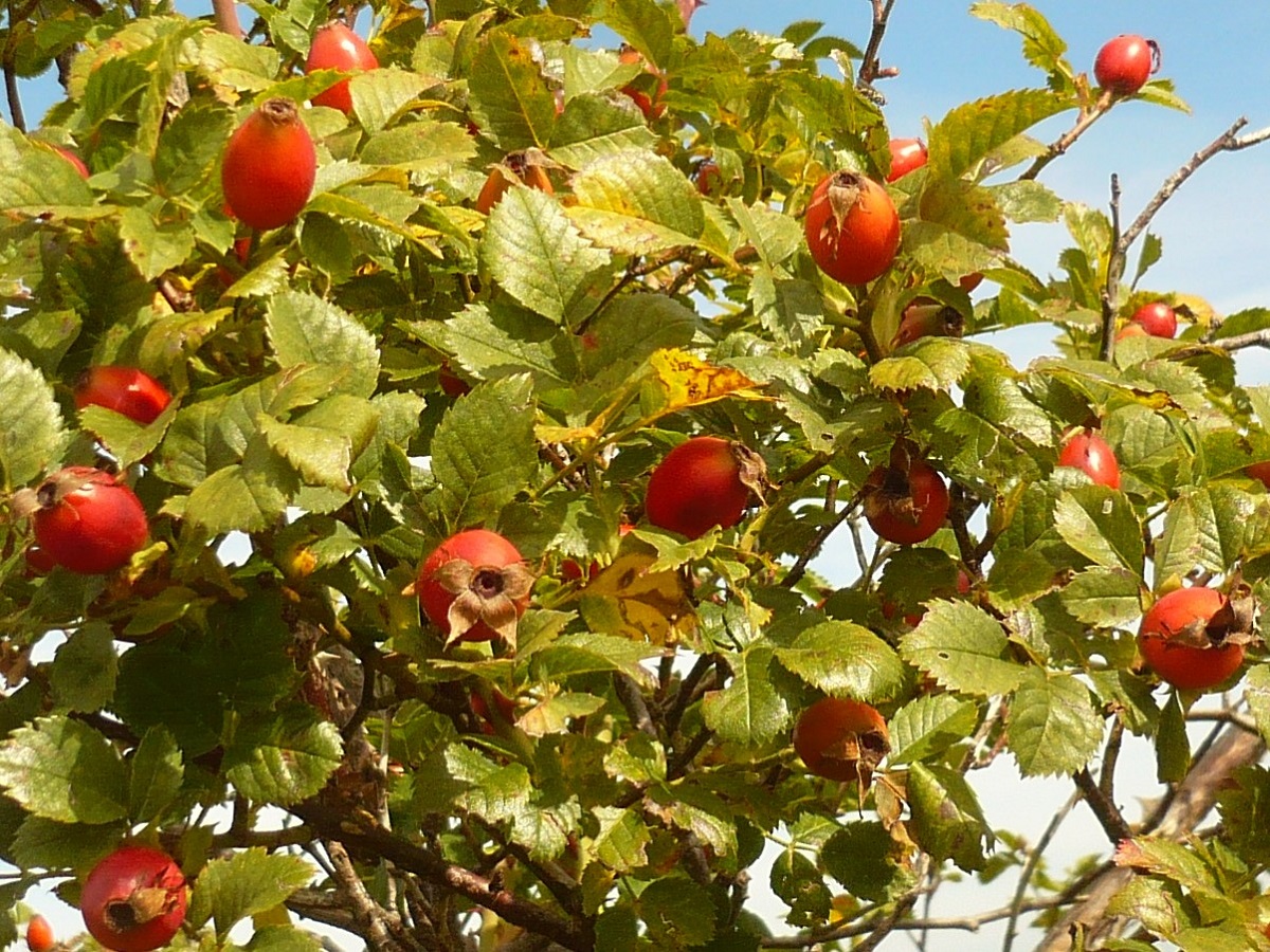 NPh – 1-3 m – Aiguillons arqués, 5-7 folioles à dents simples, rachis ± glanduleux – Fleurs de Ø 4-8 cm, à 5 pétales ± roses, sépales réfléchis, caducs – ’’Fruit’’ rouge à pédicelle glanduleux
