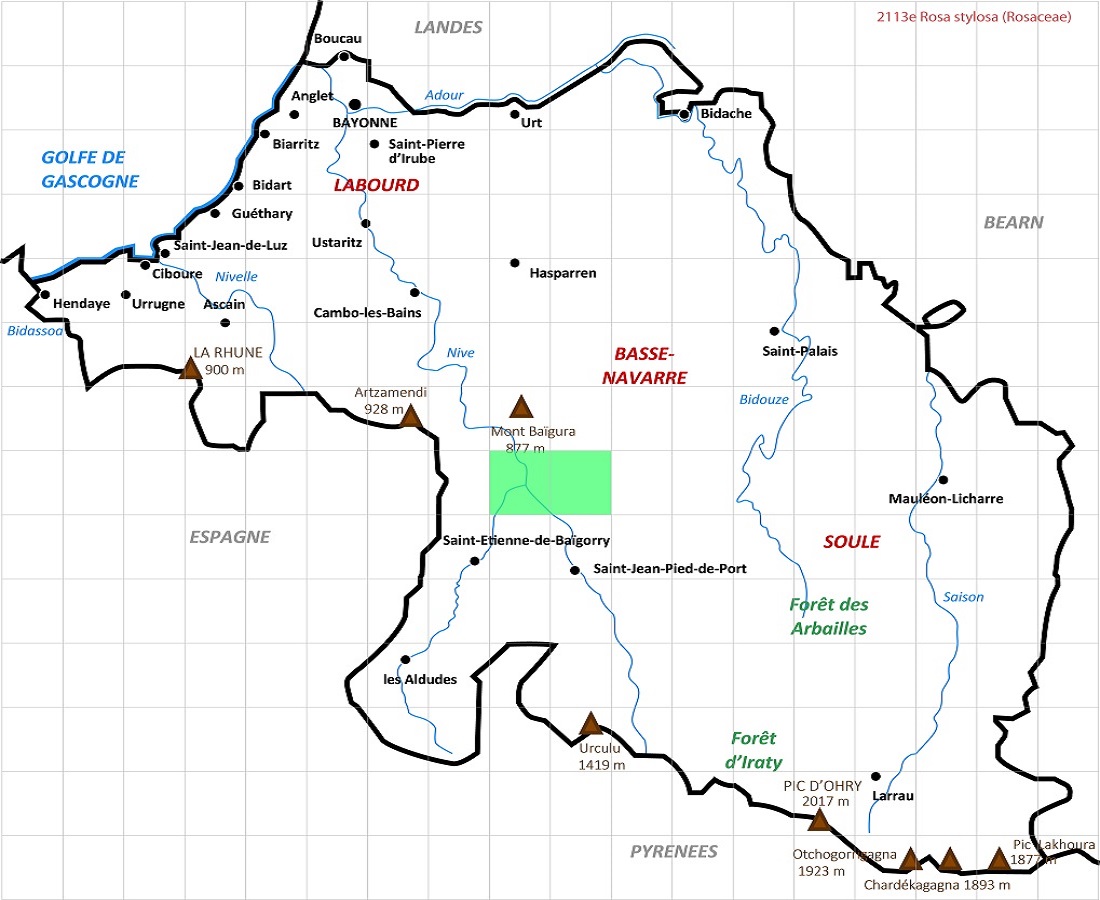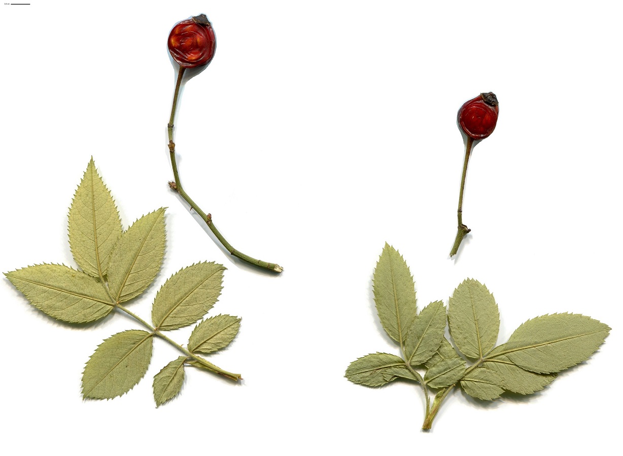 NPh – 1-3 m – Aiguillons arqués, 5-7 folioles velues, dents simples – Fleurs de Ø 4-7 cm à 5 pétales blancs parfois roses, à styles soudés, disque conique – Pédicelle long ± glanduleux