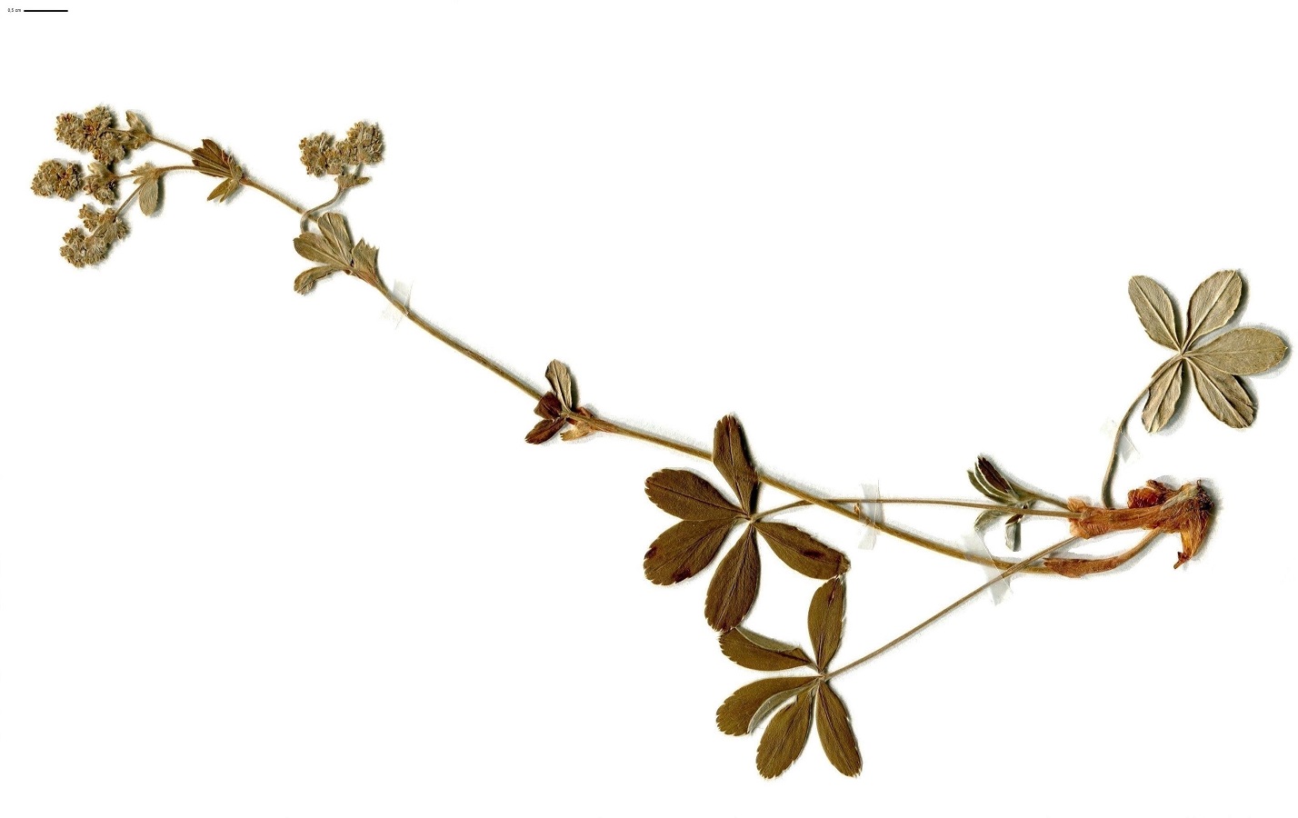 Hc – 1-3 dm – Feuilles à 5 folioles obovales, à base à peine soudée, dentées, soyeuses argentées dessous – Tiges florifères élevées, glomérules denses de petites fleurs jaune verdâtre