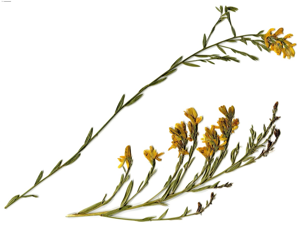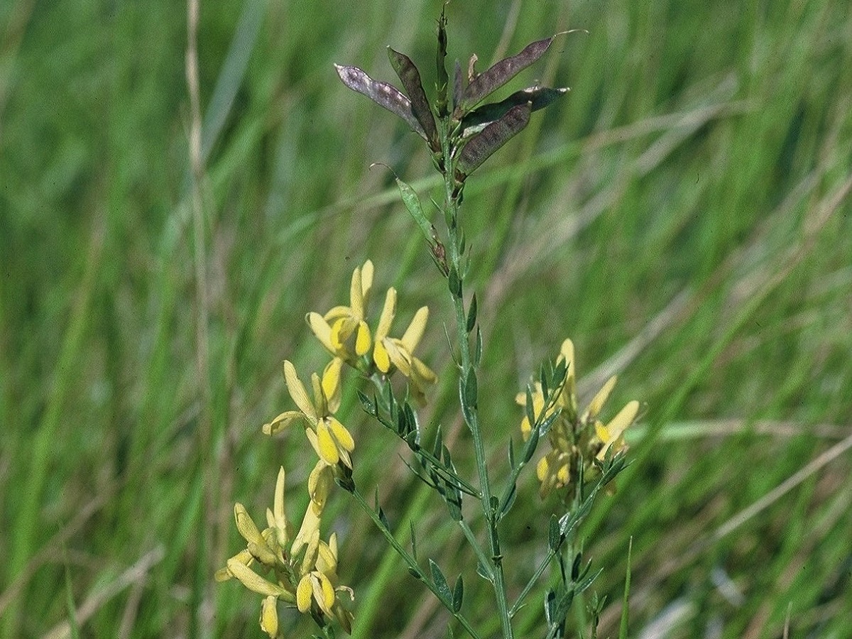 Ch – 3-6 dm – Feuilles L de 1-5 cm étroites lancéolées – Grappe de fleurs jaunes à étendard L de 8-15 mm largement ovale, glabre, carène ≃ à l'étendard – Gousse de 2-2,5 x 0,3-0,4 cm glabre