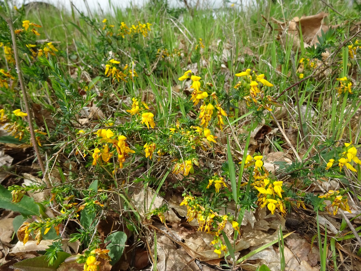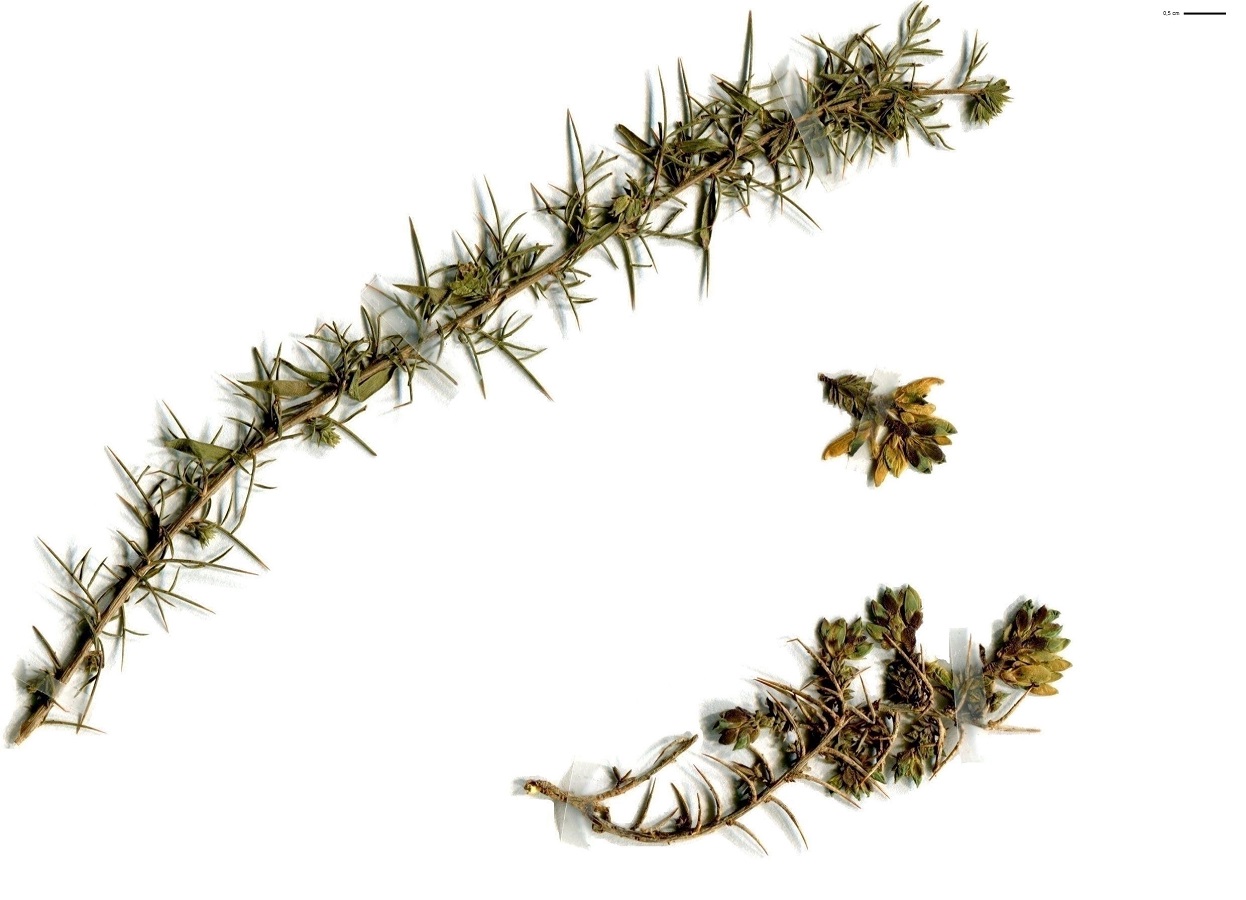 Ch – 2-6 dm – Rameaux glabres à épines simples, feuilles petites lancéolées – Grappes courtes de fleurs jaunes à étendard L de 6-8 mm < à la carène – Gousse allongée de L ≃ 1,5 cm glabre