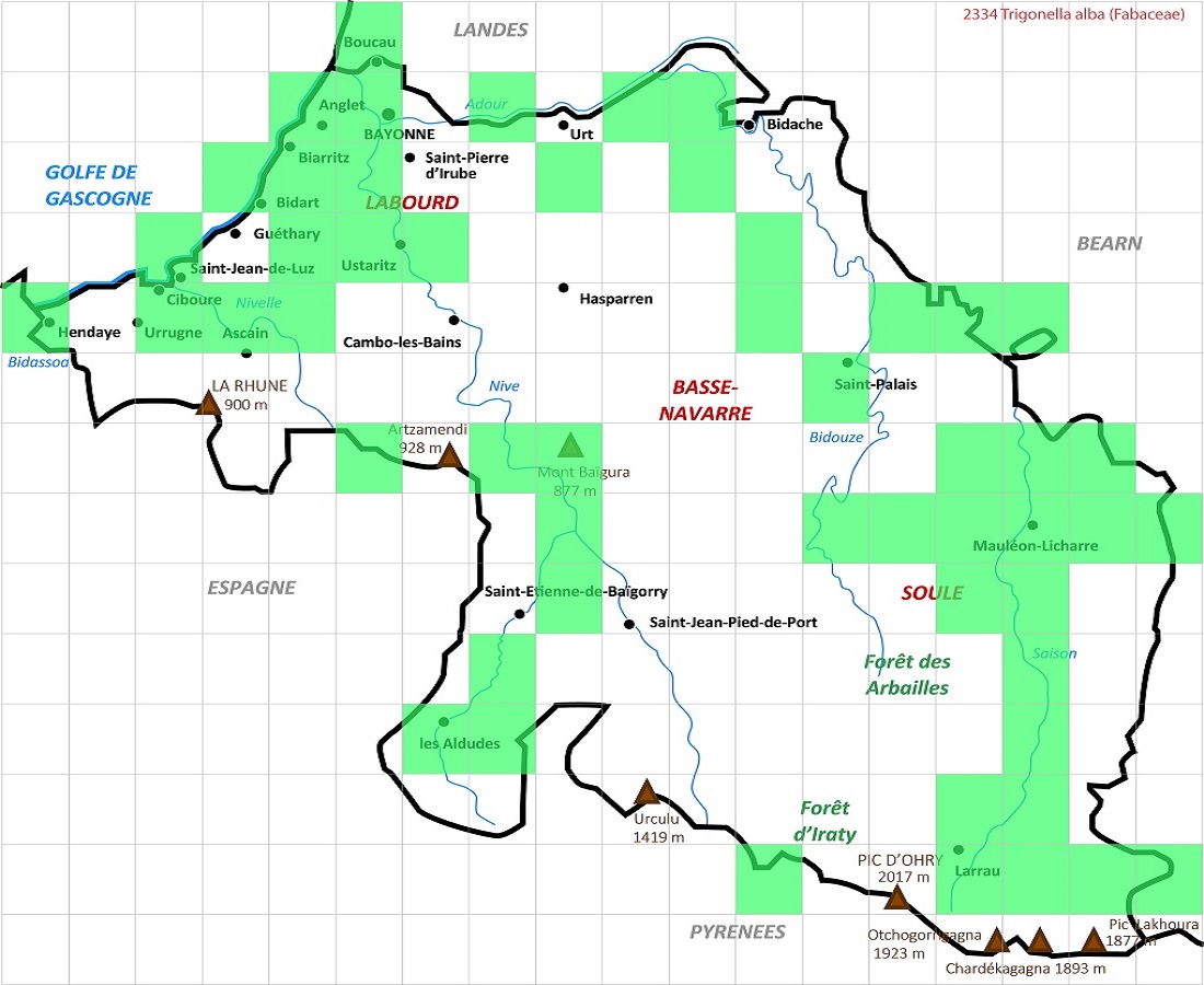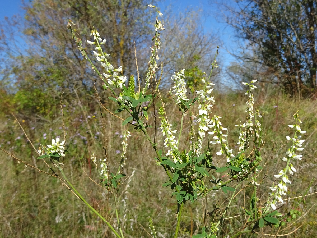 Th/Hc – 3-15 dm – 3 Folioles oblongues, stipules entières – Grappes étirées de 40-70 fleurs, corolle blanche L de 4-5 mm, étendard > à la carène – Gousse L de 3-5 mm obovoïde réticulée