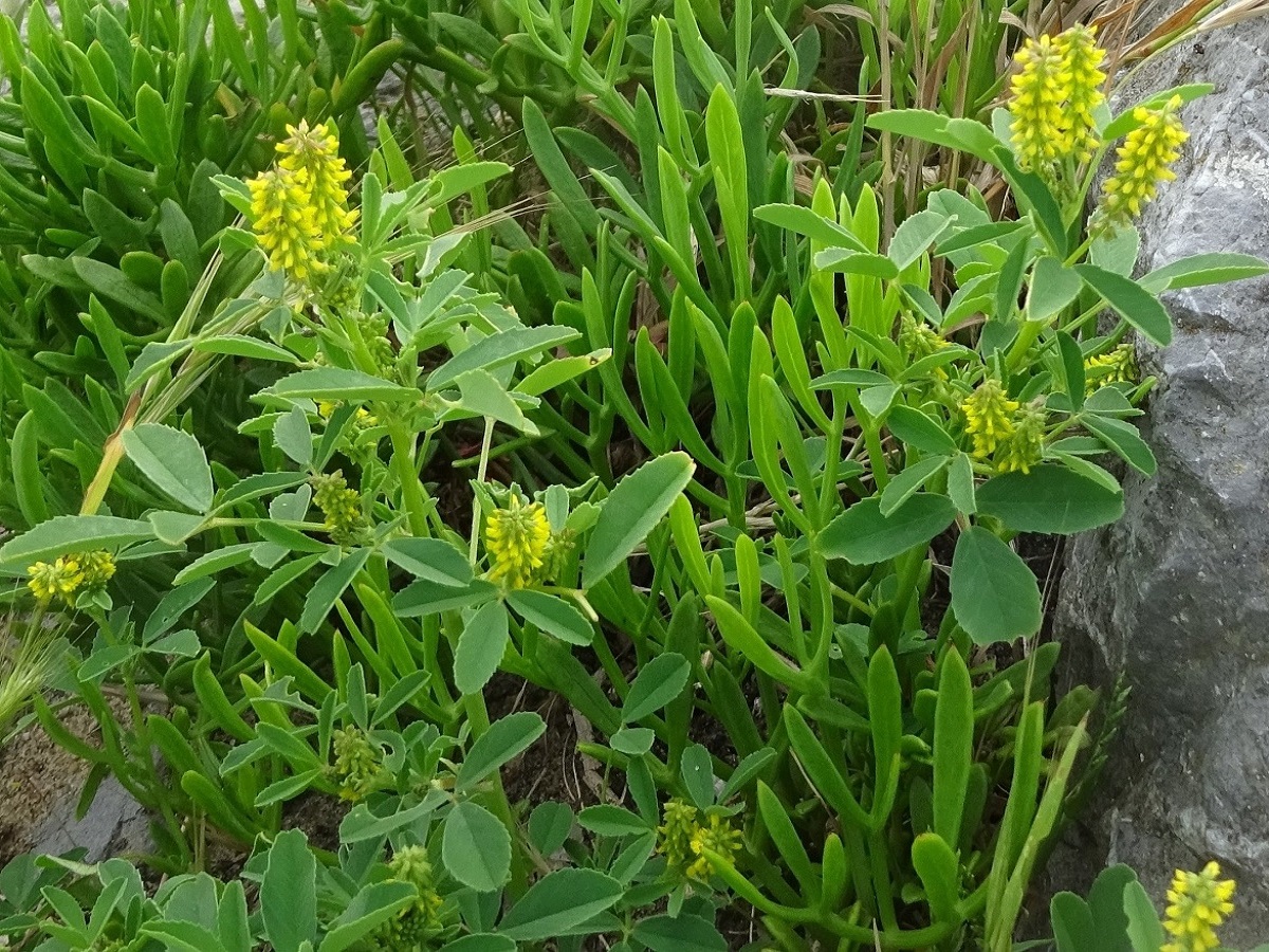 Th – 2-4 dm – Feuilles à 3 folioles étroites, stipules entières – Grappes assez courtes de 10-30 fleurs, corolle jaune (2-3 mm), étendard > aux ailes – Gousse (Ø 1,5-3 mm) globuleuse réticulée