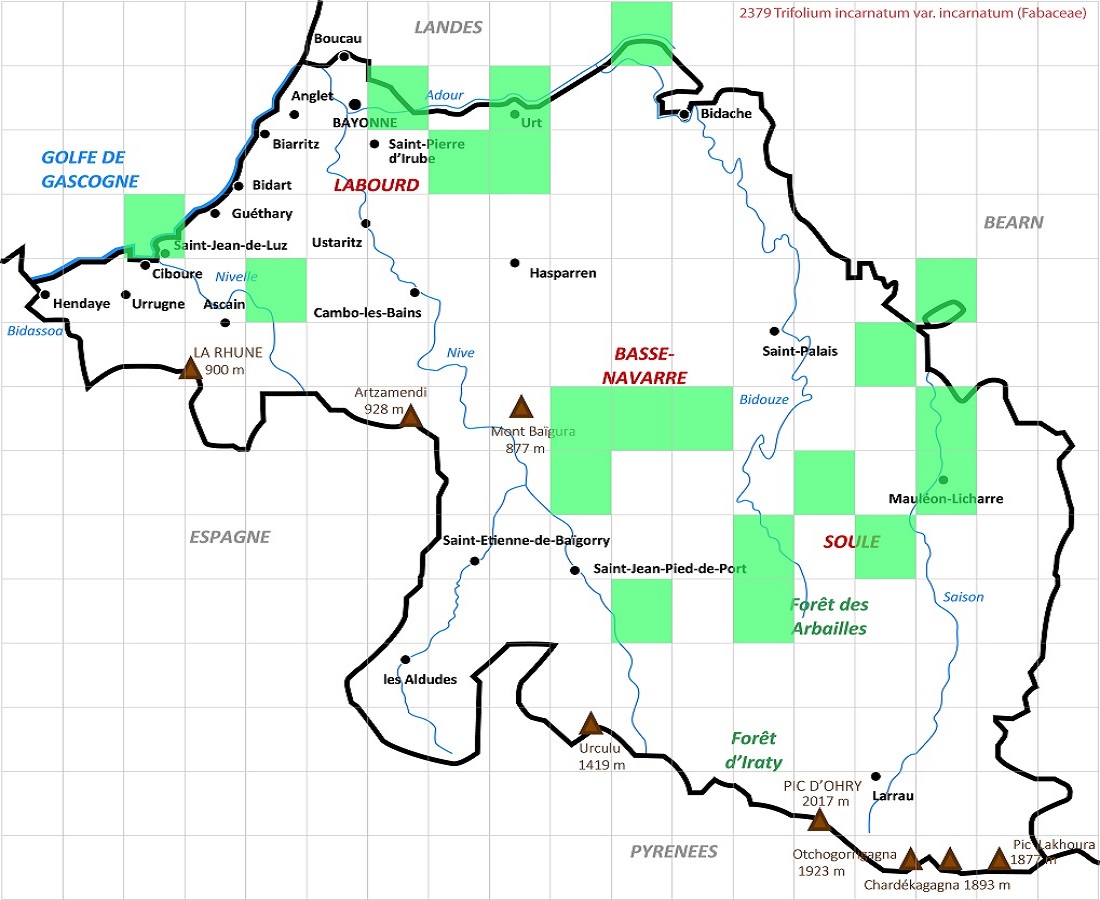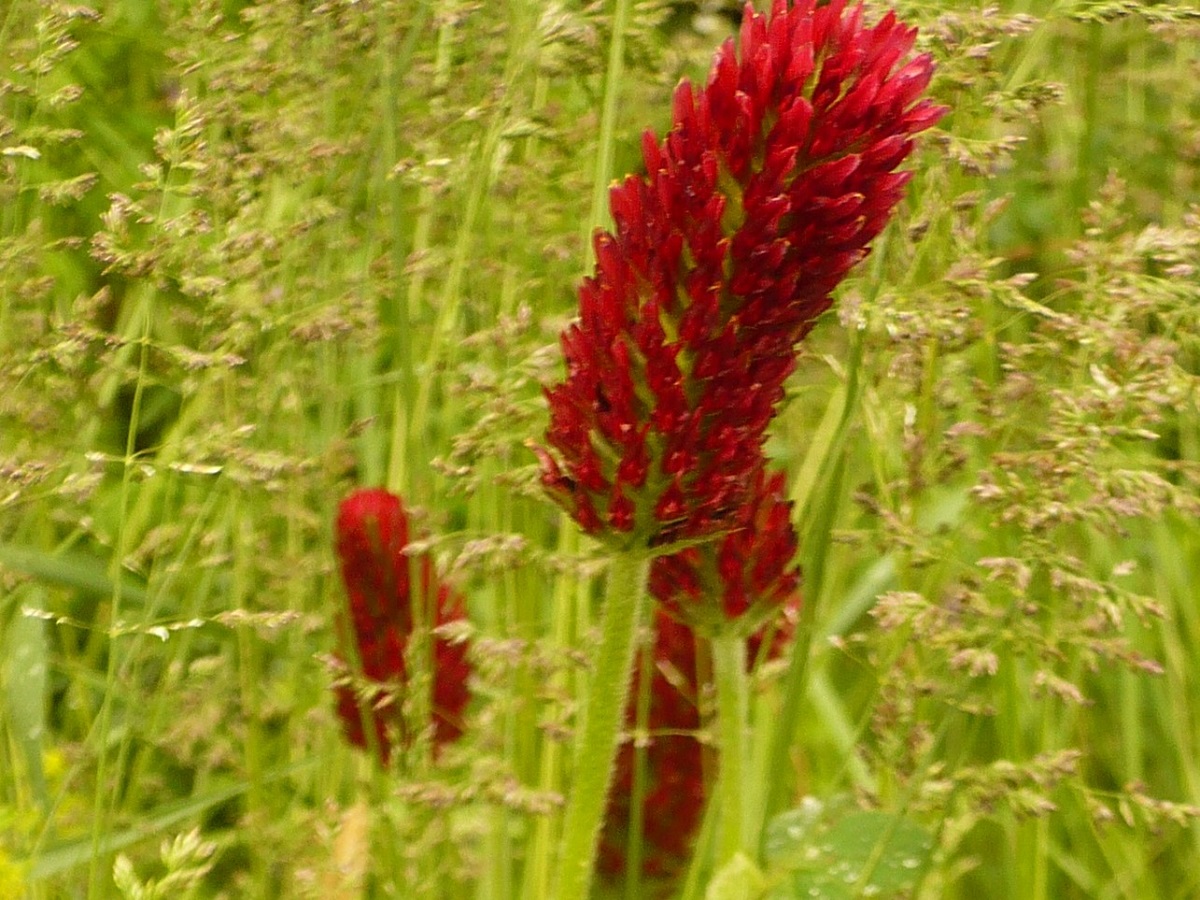 Th – 2-5 dm – Folioles L de 1-2,5 cm obovales émarginées, stipules ovales – Fleurs rouge sombre en tête dense ± allongée L de 3-5 cm, corolle de L ≃ 1 cm ≥ au calice ± coloré à dents > au tube
