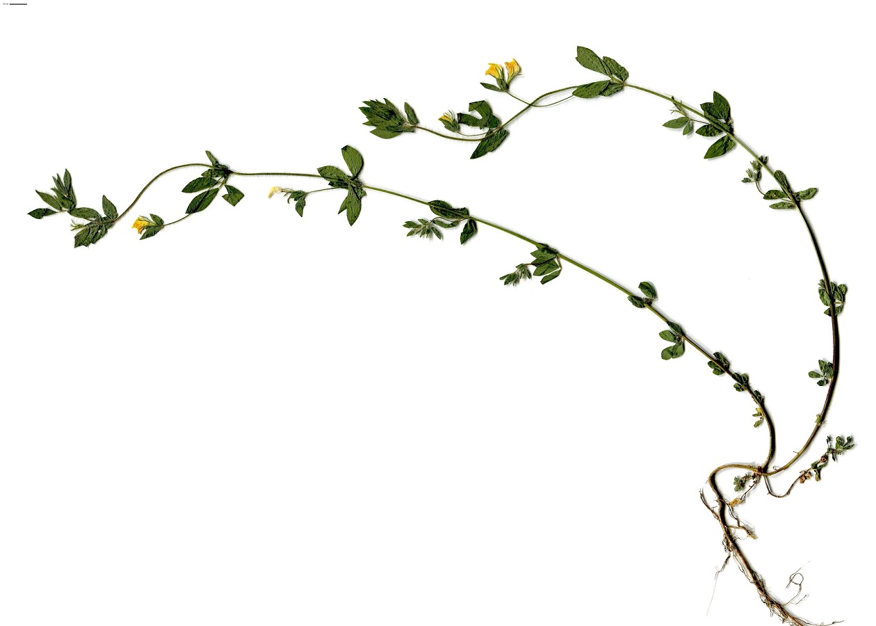 Th – 2-4 dm – Feuilles à 3(+ 2) folioles L de 5-10 mm oblongues – Fleurs petites par 1-2, corolle jaune L de 6-7 mm, calice à dents > au tube – Gousses L de 1,5-3 cm droites, grêles, ± écartées