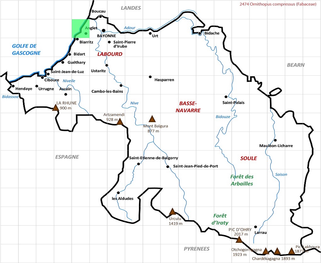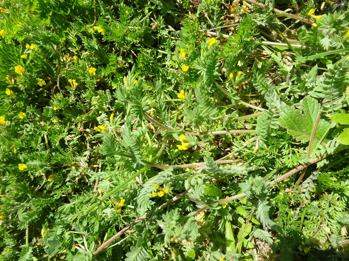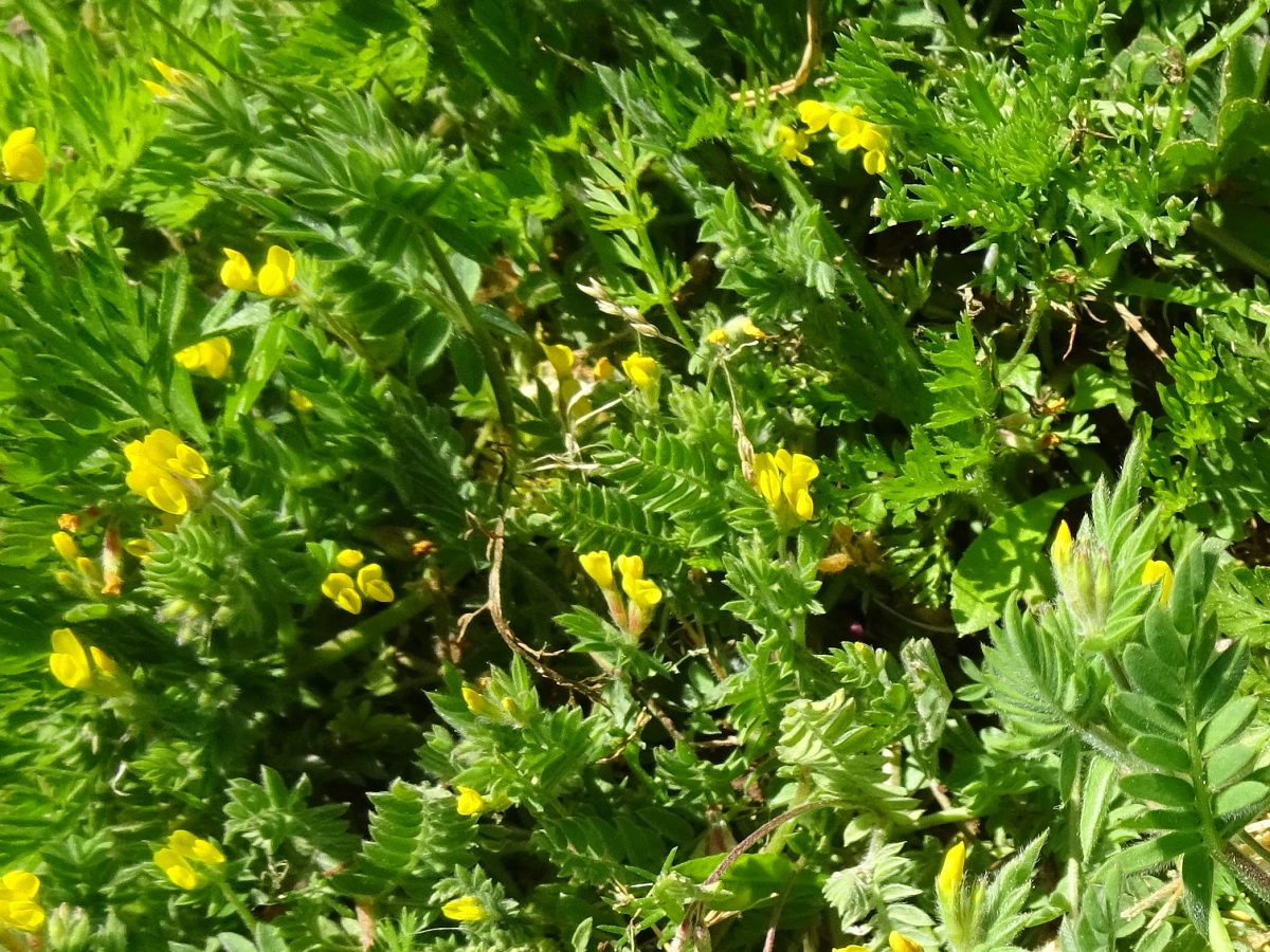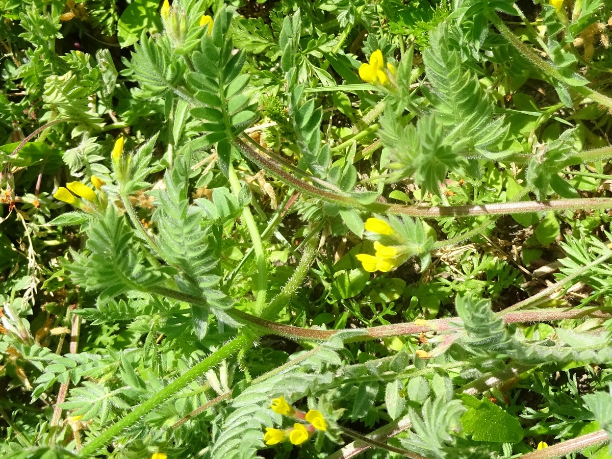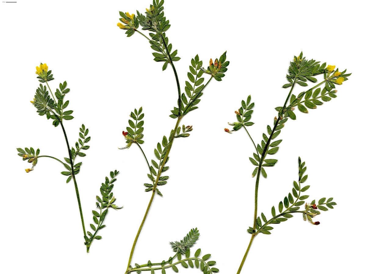 Th – 1-3 dm – Tige grêle à feuilles serrées sessiles, 13-31 petites folioles ovales – Têtes de 3-5 fleurs L de 5-6 mm à corolle jaune vif – Gousse L de 2-5 cm recourbée, comprimée, velue