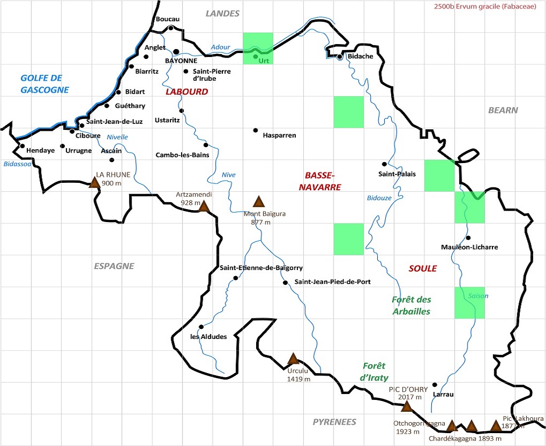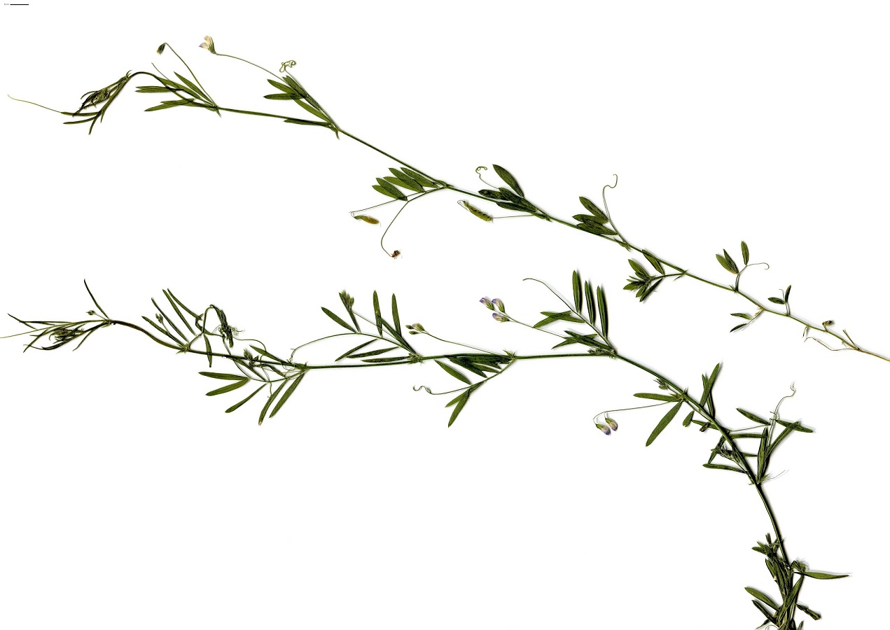 Th – 3-6 dm – Feuilles pennées à 4-10 folioles L de 1-2,5 cm linéaires et vrille > – 2-5 Fleurs à corolle L de 6-9 mm lilacée, pédoncule > à la feuille – Gousse L de 12-17 mm, à 5-6 graines