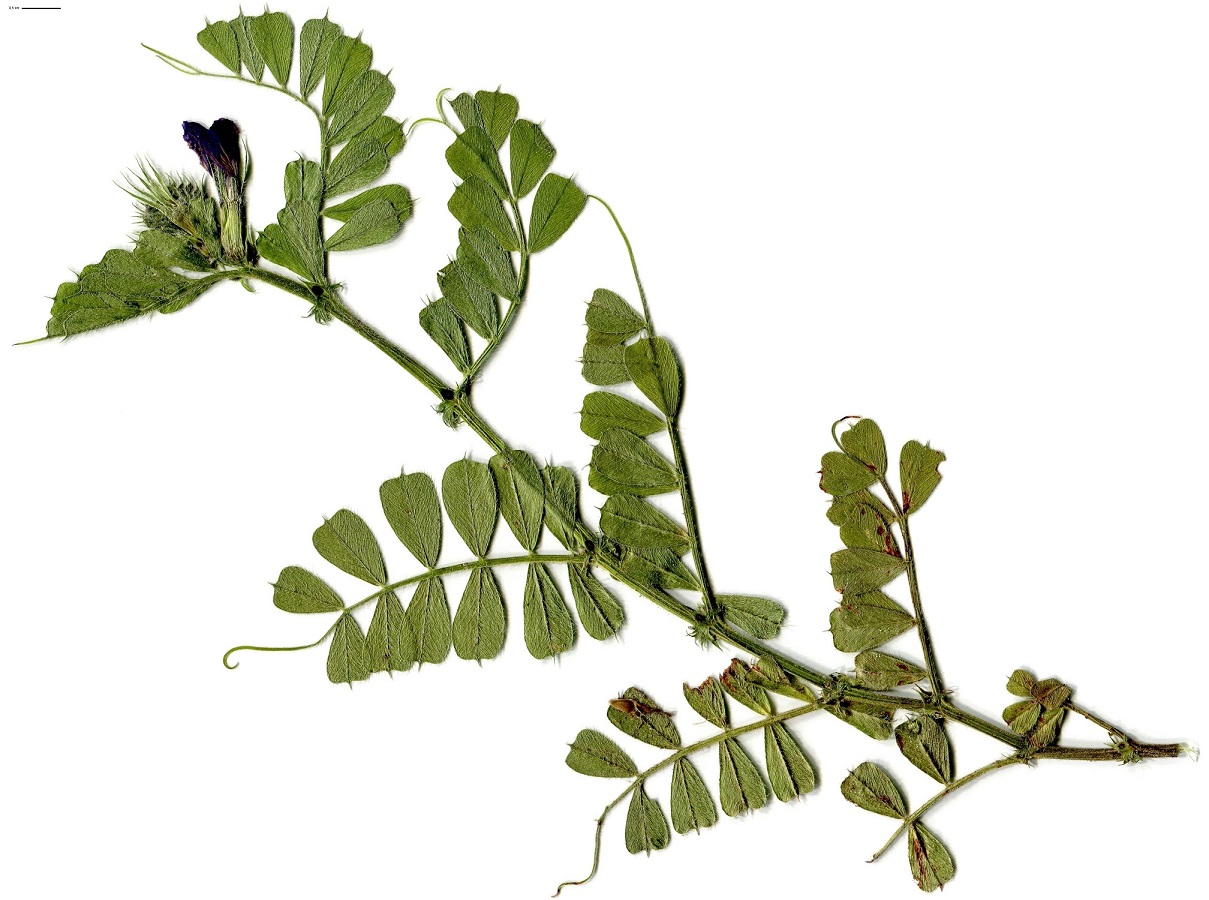 Th – 5-10 dm – Feuilles pennées à 8-14 folioles L de 1-3 cm obcordées, avec vrille – Fleurs par 1-2, corolle L de 2-3 cm rouge violacé à ailes plus foncées – Gousse de 4-6 mm de large, glabre