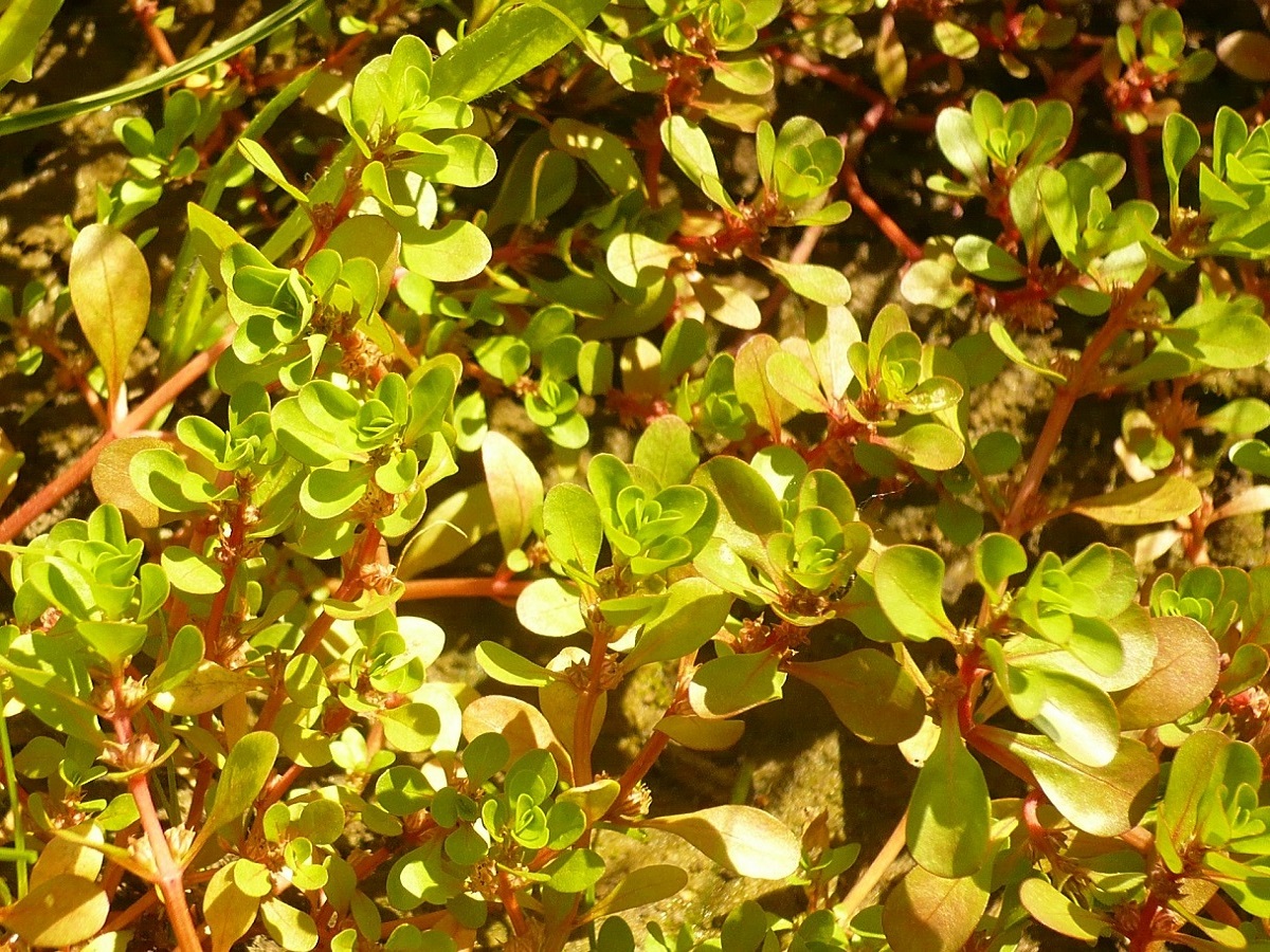 Th – 0,5-3 dm – Plante glabre couchée, feuilles L de 0,5-2 cm spatulées, opposées – Fleurs axillaires à pétales lilacés minuscules – Capsule sphérique de L > à celle du calice à 12 dents