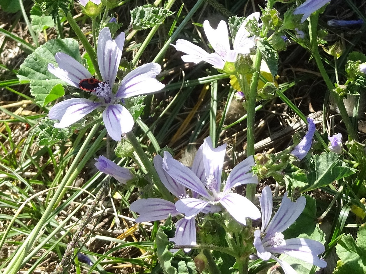 Th – 5-10 dm – Feuilles à 3-7 lobes ± aigus, dentés – Fleurs à 5 pétales L de 1,5-2 cm lilacés étroits, veinés, échancrés, épicalice à segments larges ovales, soudés à la base – Méricarpes lisses