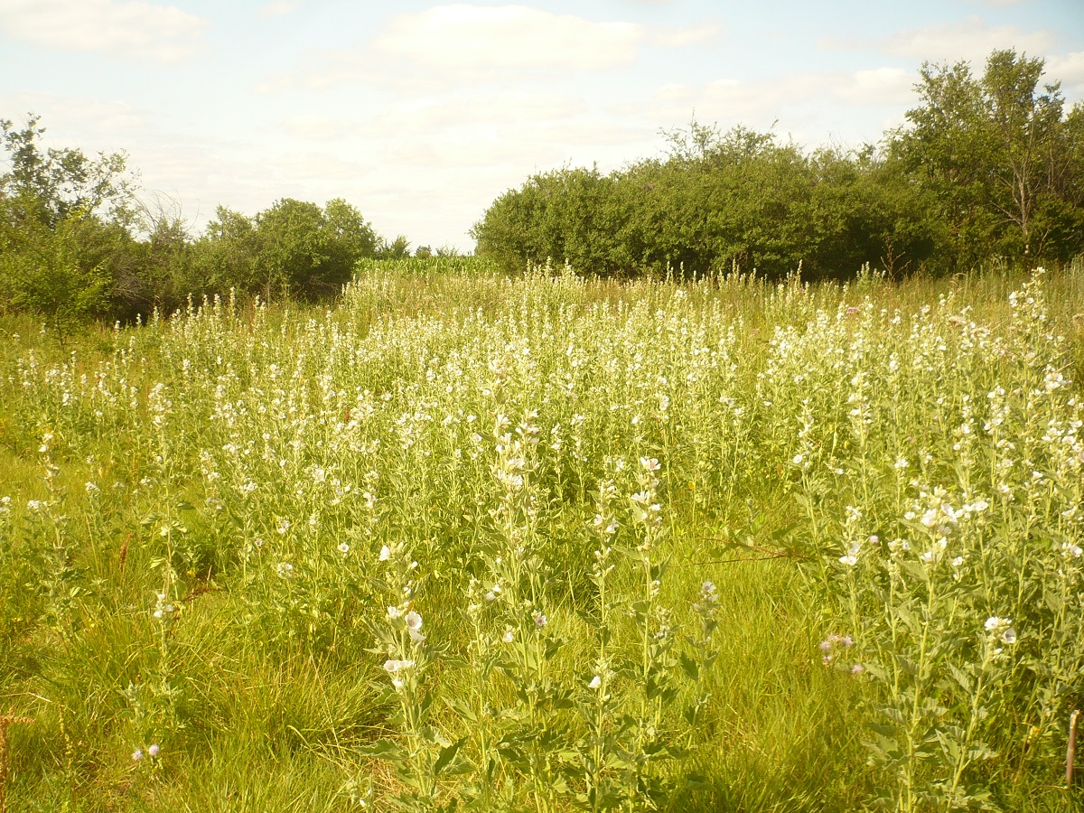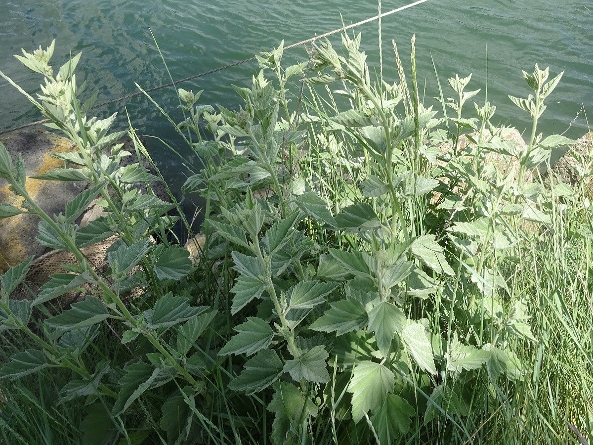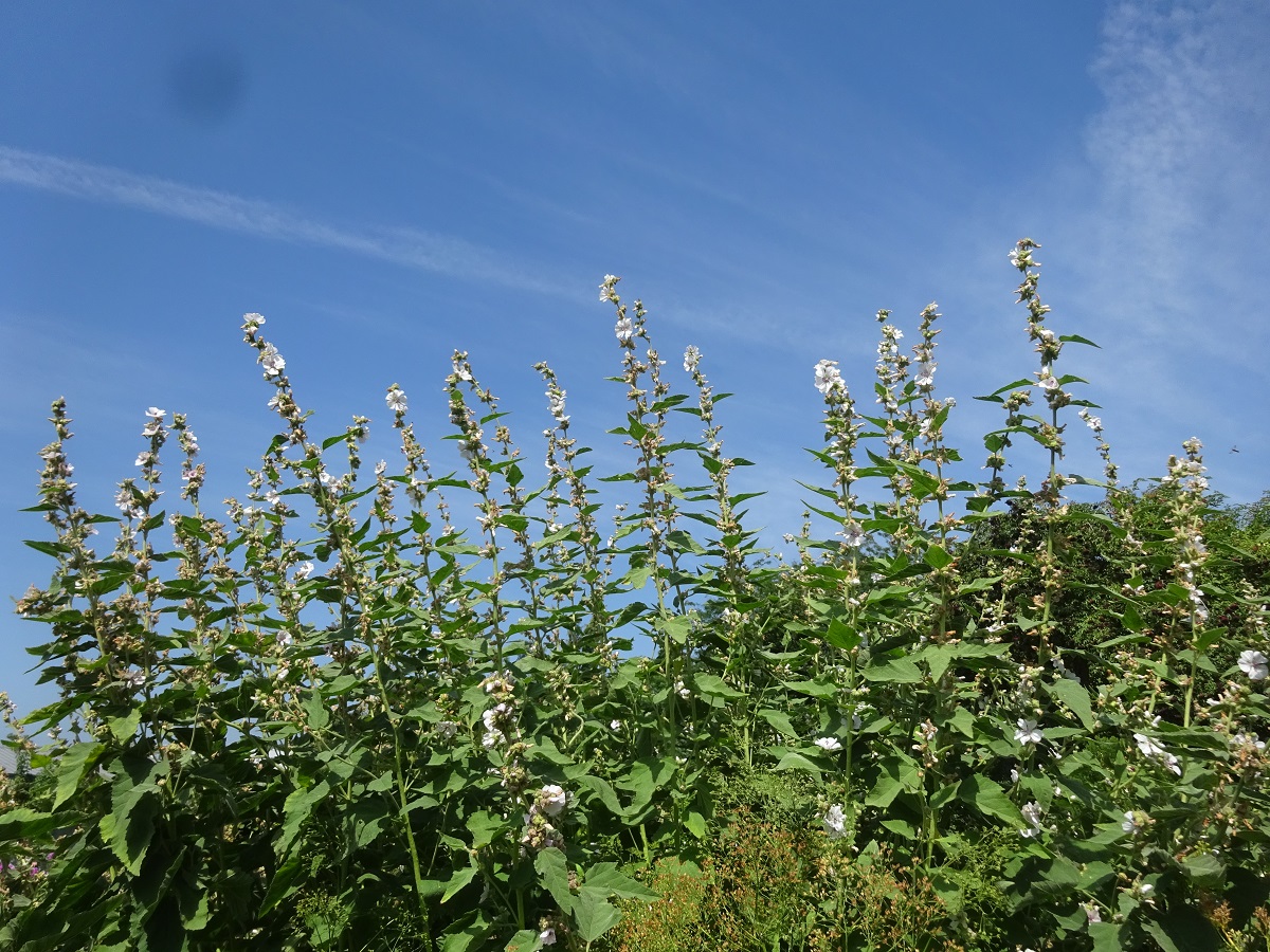 Hc – 5-15 dm – Plante dressée veloutée blanchâtre, feuilles ovales aiguës ± lobées dentées – Fleurs à 5 pétales L de 1,5-2 cm rose pâle, épicalice à segments linéaires – Méricarpes velus