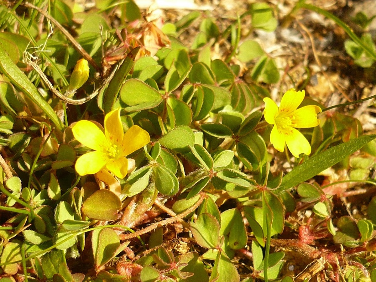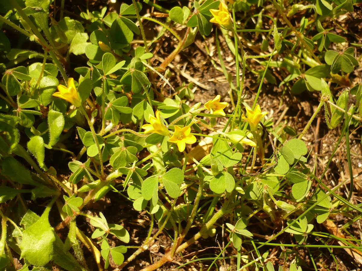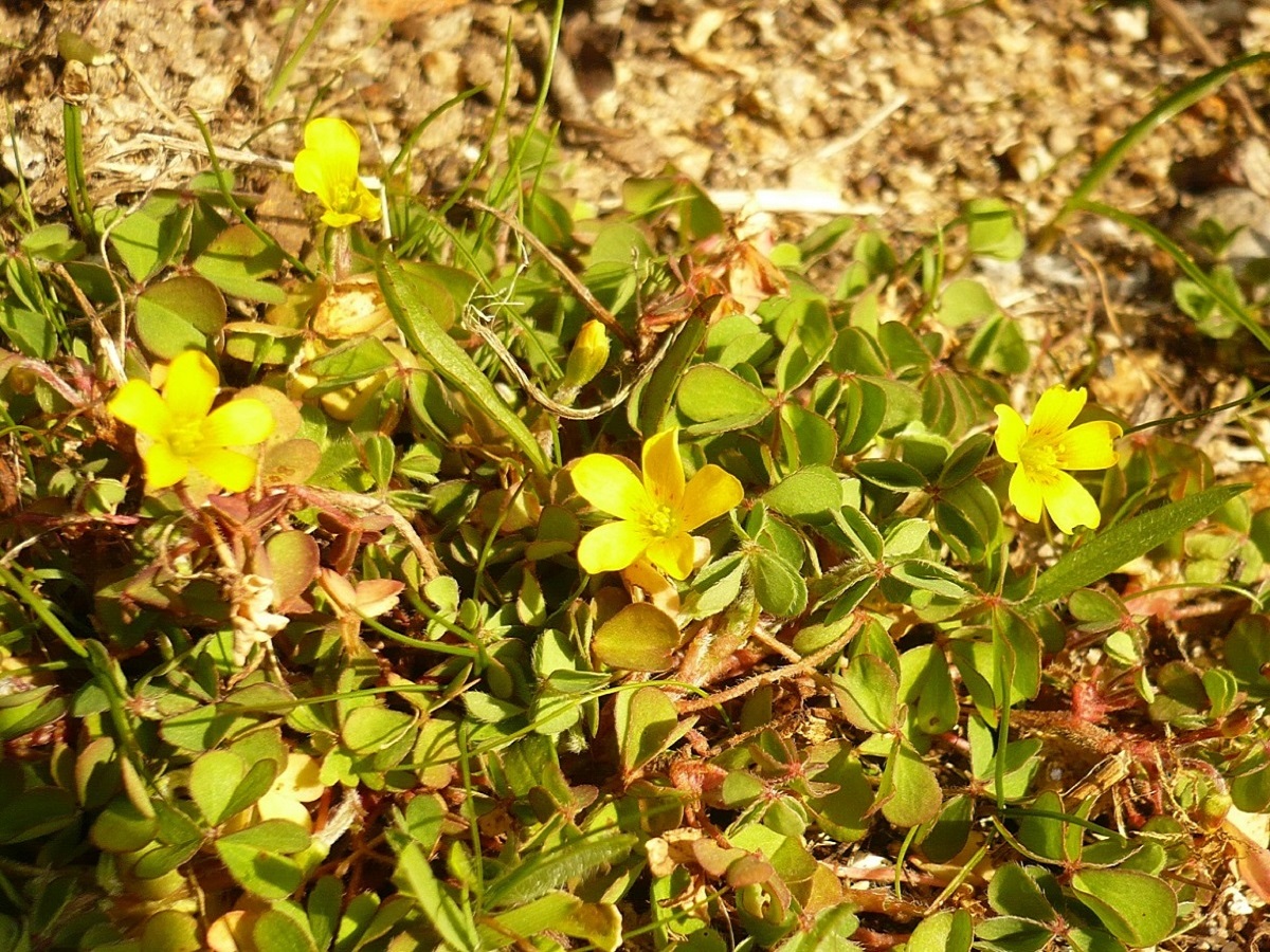 Th/Hc/Ch – 0,5-2 dm – Tige rampante, petites feuilles à 3 folioles obcordées – Fleurs en ombelle, à 5 petits pétales L de 4-7 mm jaunes – Capsule cylindrique L de 1-2 cm, dressée