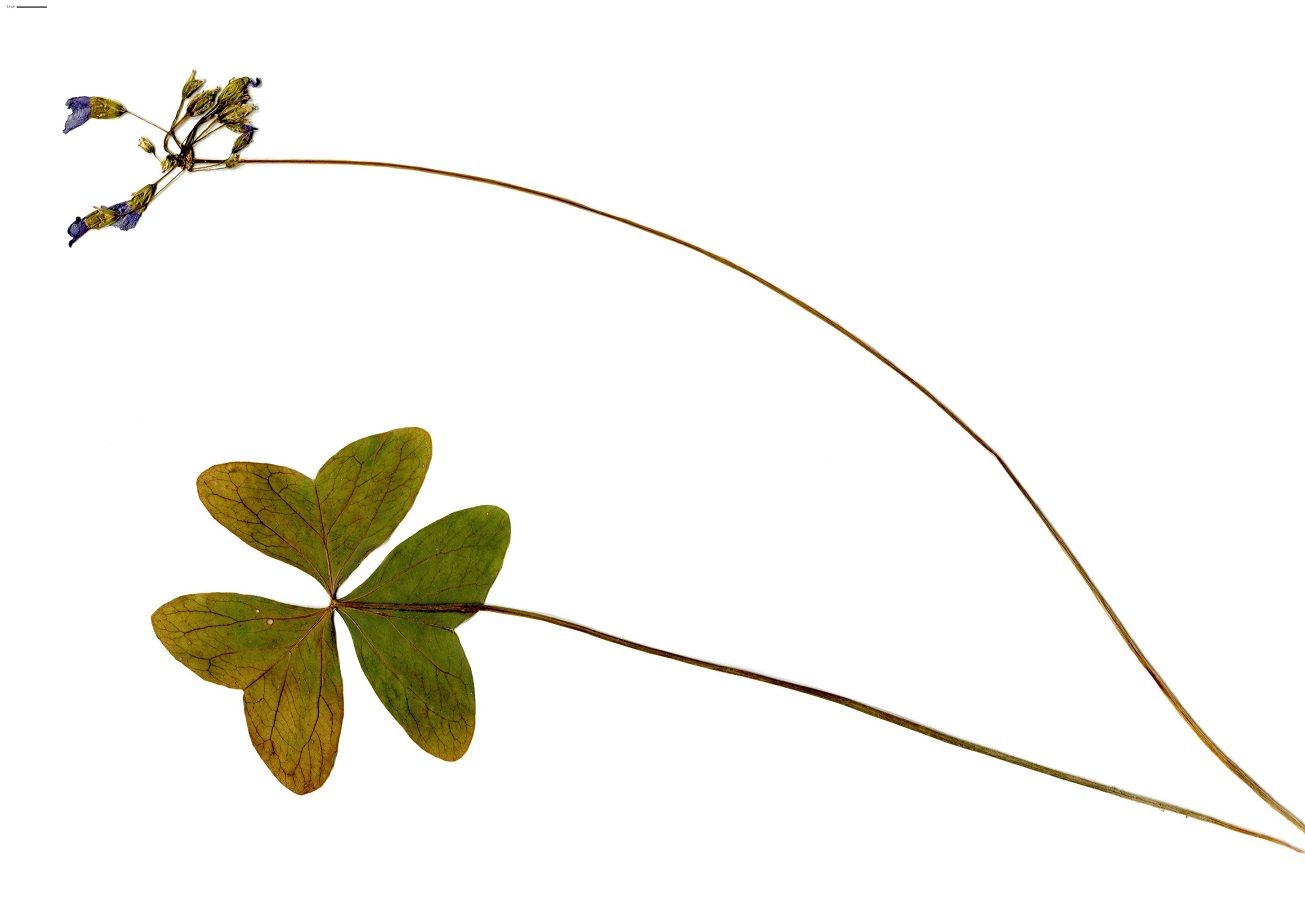G à bulbe – 1-3 dm – Dressée, feuilles à 3 grandes folioles subtriangulaires obcordées, à long pétiole – Fleurs, à pétales L de 5-12 mm mauve pâle, en ombelle à long pédoncule
