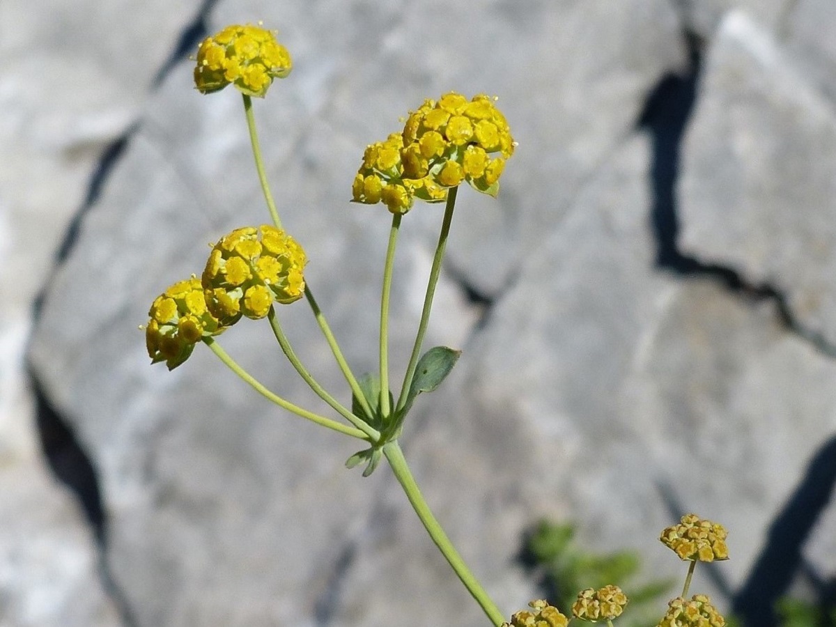 Hc – 2-4 dm – Feuilles linéaires-lancéolées, les < en faisceau, les > à base large – Ombelles à 5-7 rayons, fleurs < aux bractéoles ovales lancéolées, jaunes – Fruit de L ≃ 3 mm ovoïde côtelé