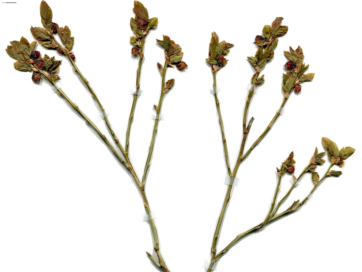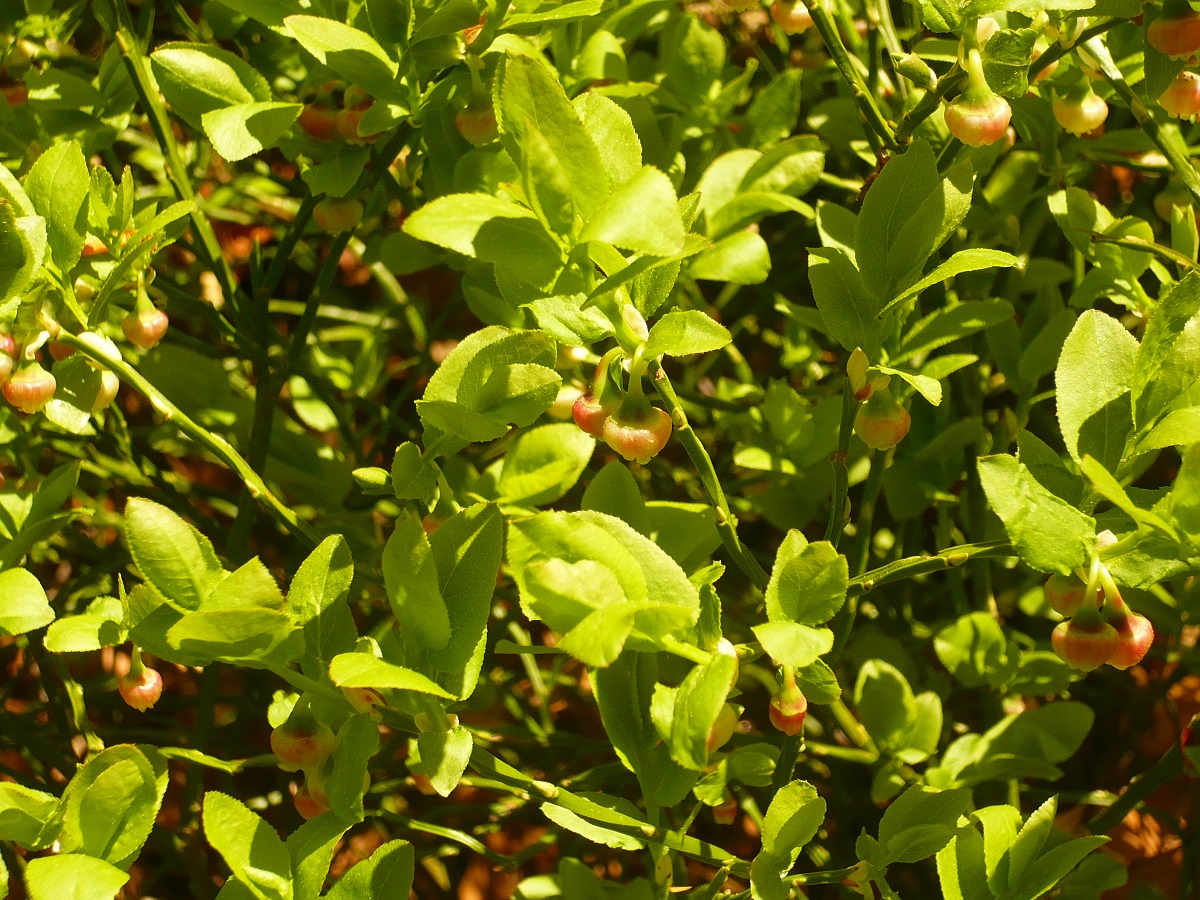Ch – 2-6 dm – Rameaux verts anguleux, feuilles (L 1-3 cm) ovales – Fleurs en petit grelot de L 4-6 mm pendant rosé verdâtre, à lobes courts récurvés – Fruit (Ø 6-10 mm) globuleux noir violacé