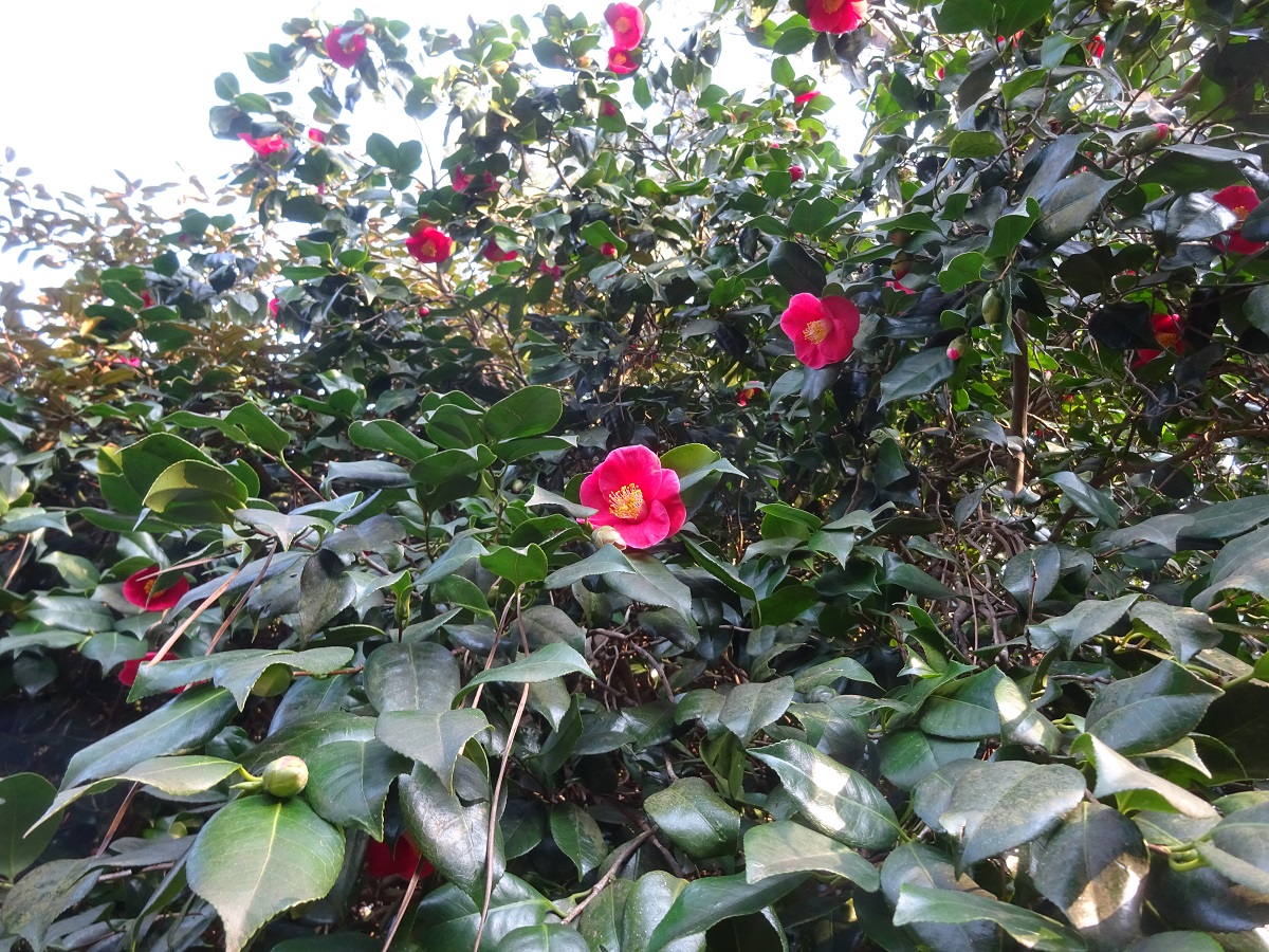 NPh/Ph – 5-10 m – Feuilles ovales elliptiques acuminées vert foncé brillant ± coriaces – Grandes fleurs roses ou rouges simples (doubles), nombreuses étamines blanches à anthères jaunes