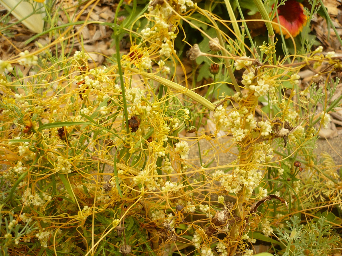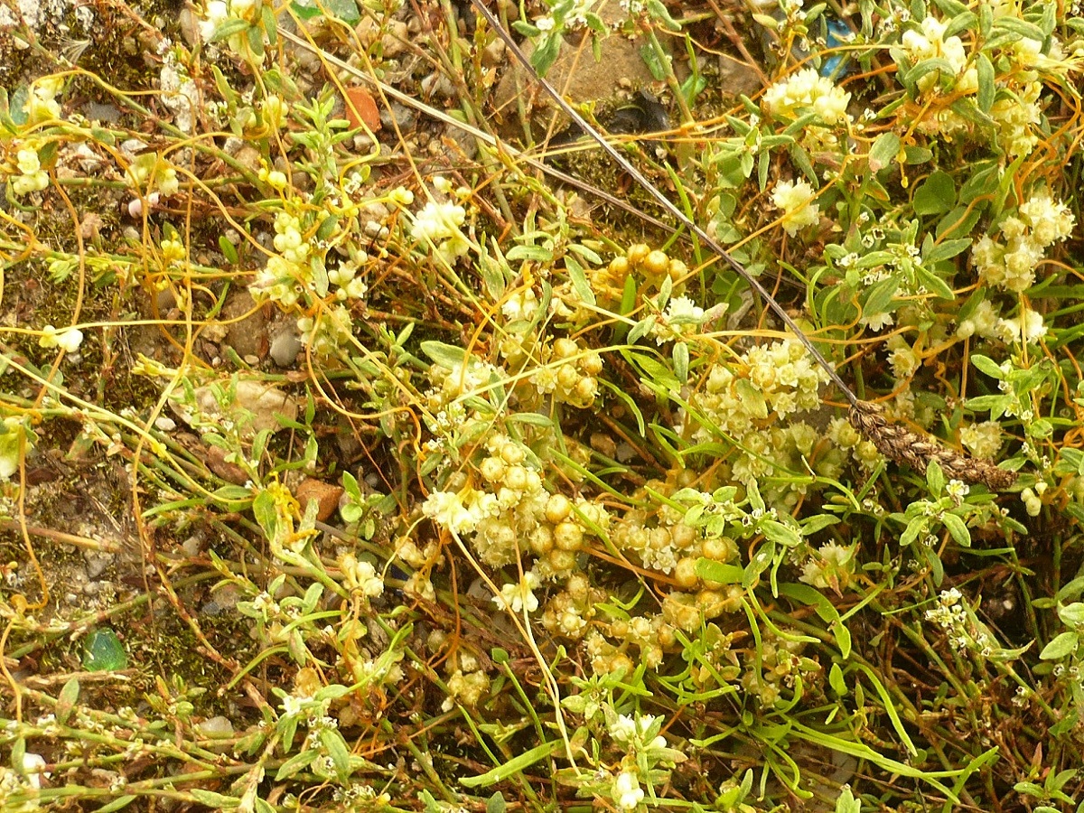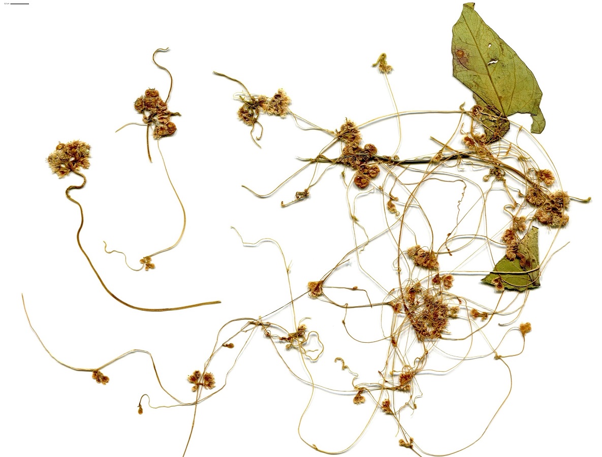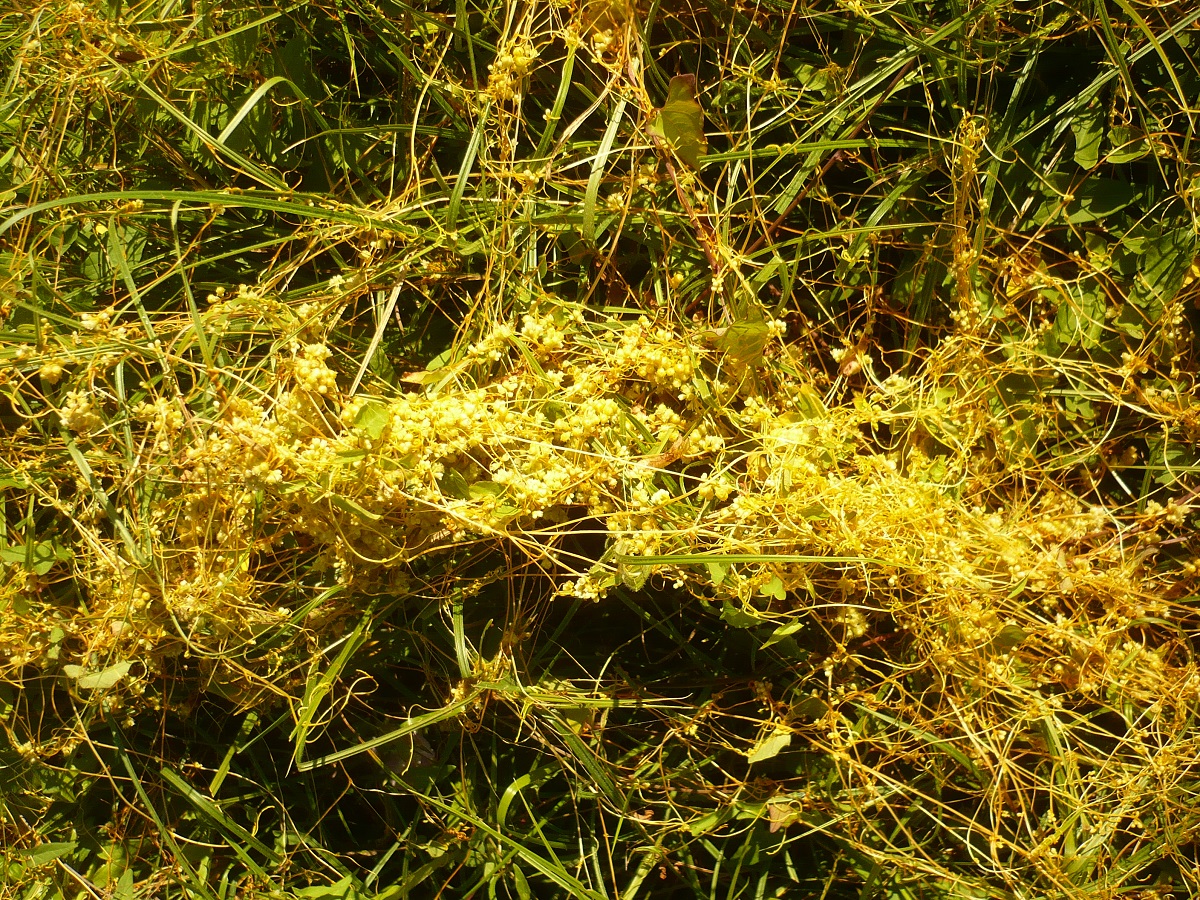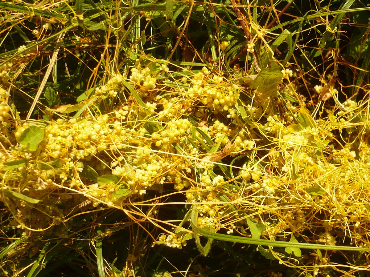 Th Par – 5-10 dm – Tiges jaunes étalées volubiles, feuilles réduites – Fleurs de Ø 2-3 mm en tête dense, corolle à 5 lobes jaunâtres aigus en triangle, tube ≤ au calice – Capsule arrondie
