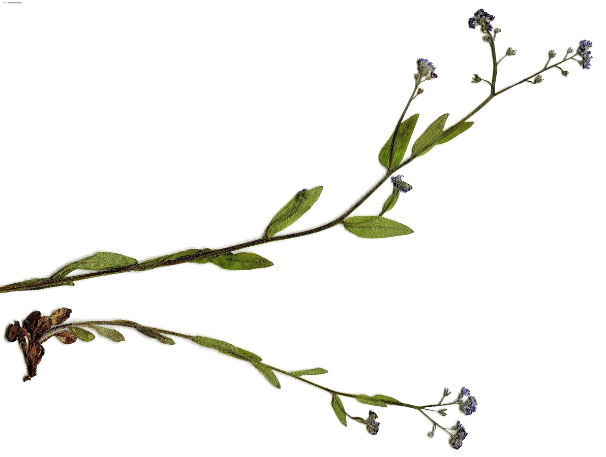 Hc – 3-6 dm – Feuilles (L 4-8 cm) oblongues, à poils étalés – Cymes scorpioïdes ± feuillées, corolle de Ø → 8 mm bleue, tube ≥ au calice → fugace, à poils crochus – Nucules de L ≃ 2 mm aiguës