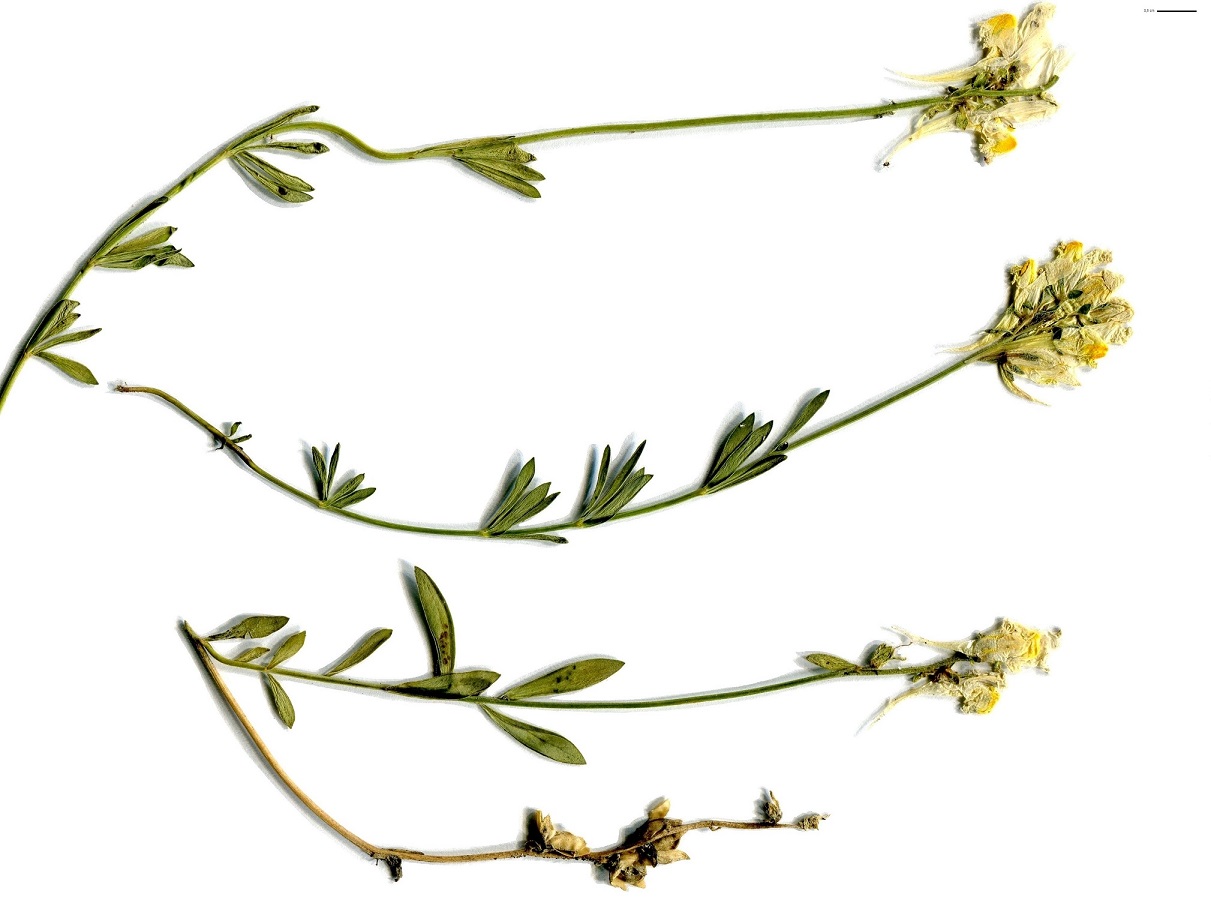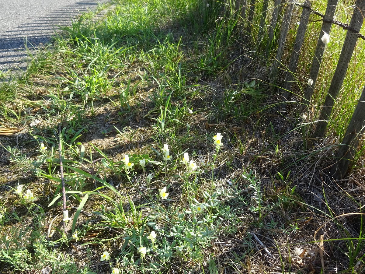 Th/Hc – 1-2 dm – Feuilles linéaires lancéolées fasciculées glauques charnues – Grappe courte, corolle L de 1,5-2 cm jaune pâle, palais + foncé, éperon (L ≃ 1 cm) ± courbé – Capsule ≥ au calice