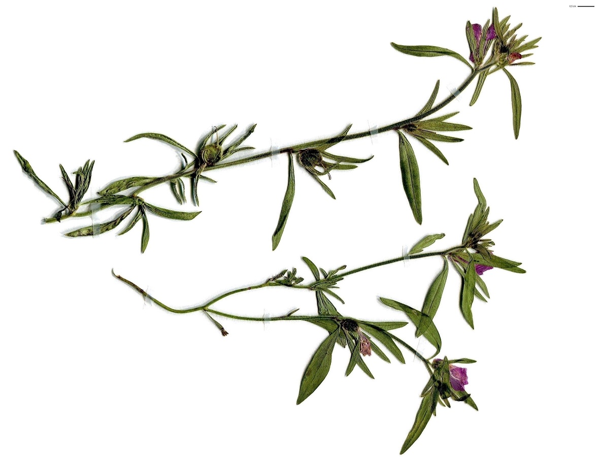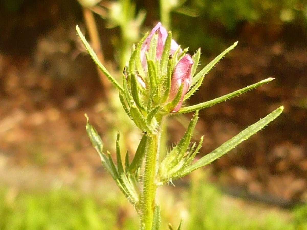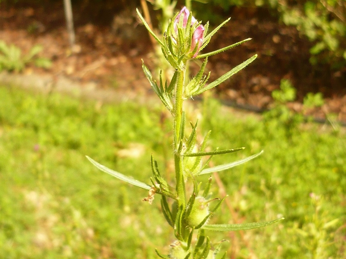 Th – 2-5 dm – Dressée, feuilles linéaires oblongues mucronées – Grappe glanduleuse, corolle (L 1-1,5 cm) rose veinée, palais et éperon bombés, sépales inégaux – Capsule ovoïde (L ≃ 9 mm)