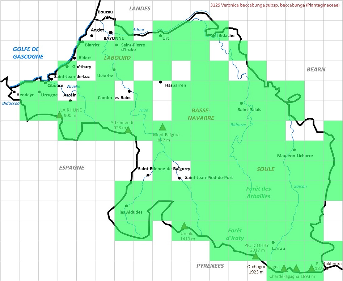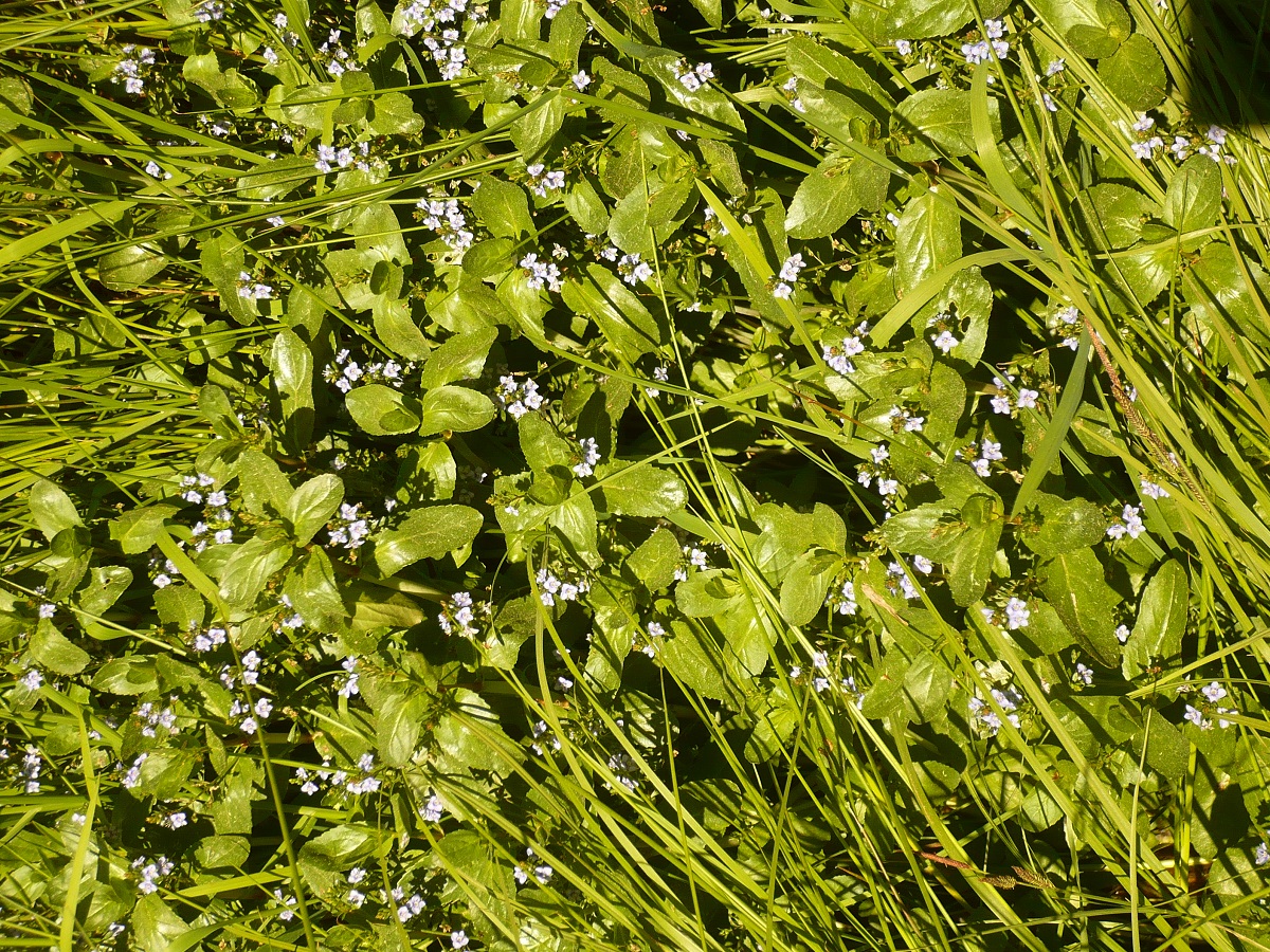 Hydr Hc – 2-6 dm – Tige pleine, feuilles épaisses ovales-oblongues obtuses, opposées, à court pétiole – Grappes de fleurs de Ø 5-8 mm bleu vif – Capsule arrondie, style de L ≃ 2 mm