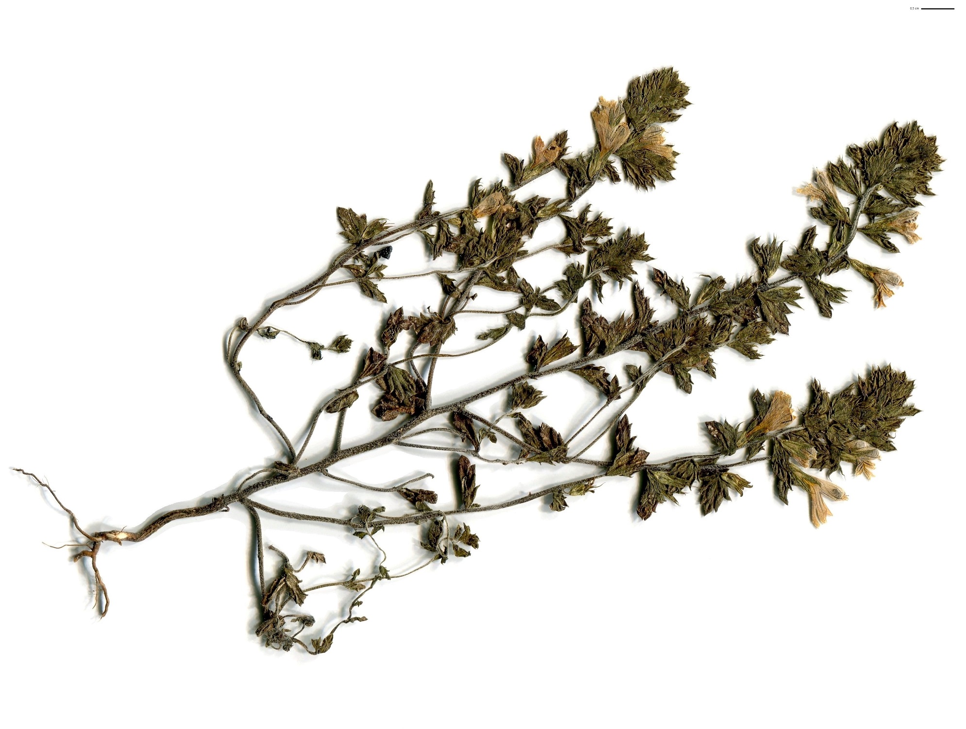 Th SPar – 0,5-2 dm – Tige velue, feuilles de L ≃ 1 cm ovales à dents nettement aristées – Corolle exserte L de 9-15 mm, à lèvre < longue, lilas et blanche – Capsule L de 6-7 mm < au calice