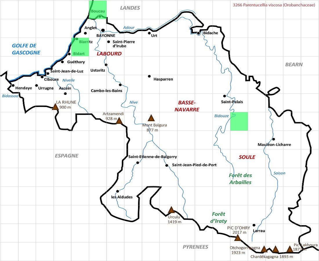 Rare – Printemps-Été – Friches, cultures, lieux sablonneux ± humides – Localisée, en zone littorale et dans les vallées, au Pays Basque