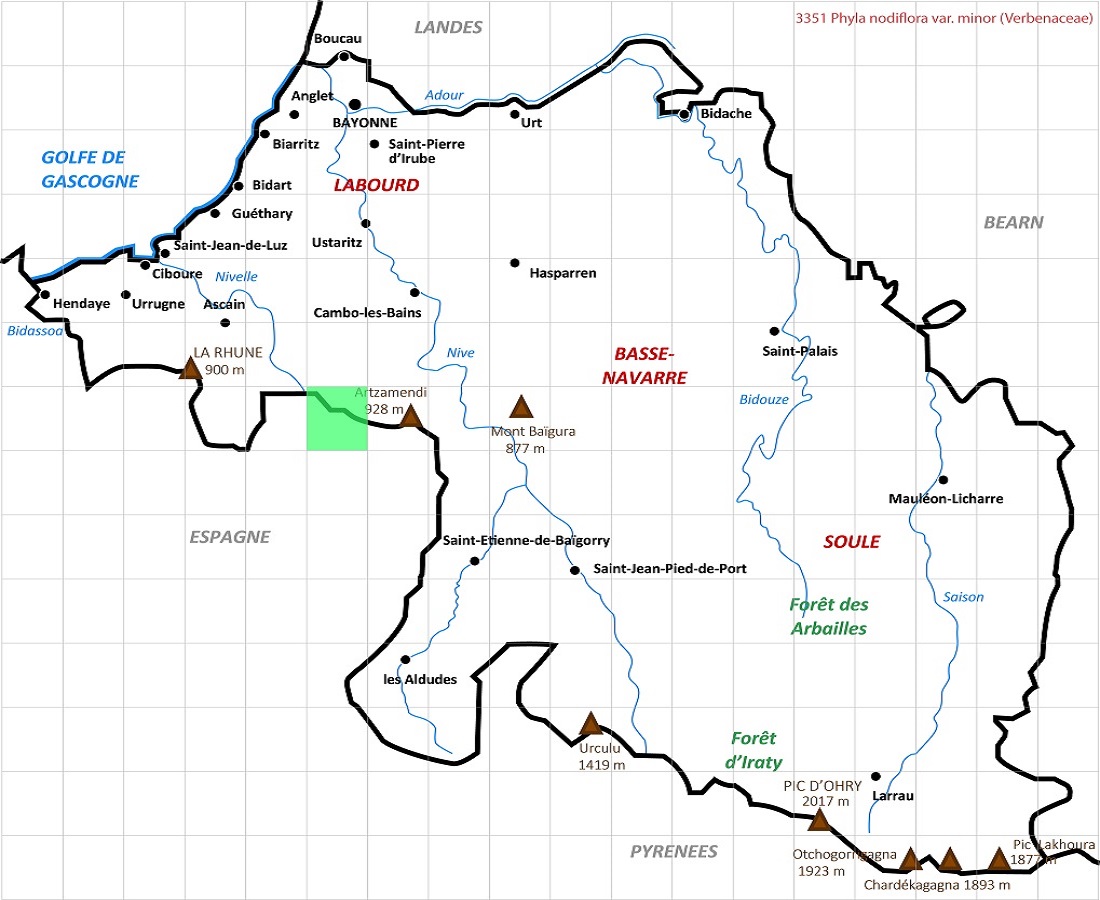 Nom Latin du taxon (Famille) Phyla nodiflora var. minor (Verbenaceae) - Synonymes Latins – (Syn. Phyla filiformis ; Lippia canescens auct.) Nom Français du taxon Lippia nodiflore - Autres Noms Français - nc Nom en Euskara nc - Autres Noms en Euskara - nc Identifiant 3351