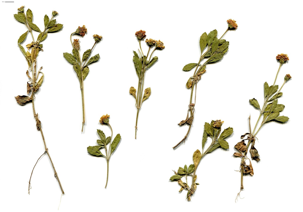 Hc/Ch – 0,5-1,5 dm – Tige rampante velue grisâtre, feuilles opposées (L ≃ 2 cm) ovales, dentées à l’apex – Fleurs en têtes de Ø ≃ 1 cm, corolle (L ≃ 3 mm) lilacé pâle, calice à ½-fendu en long
