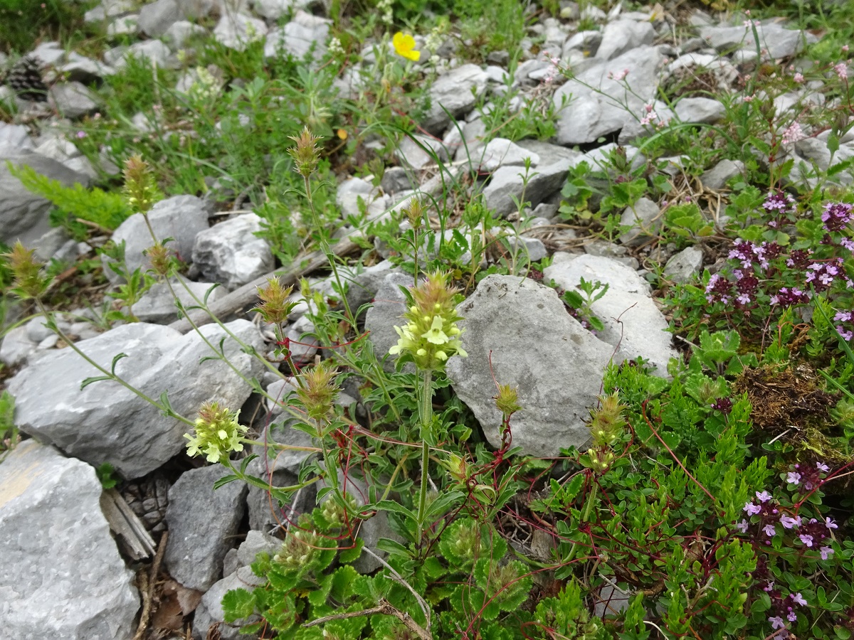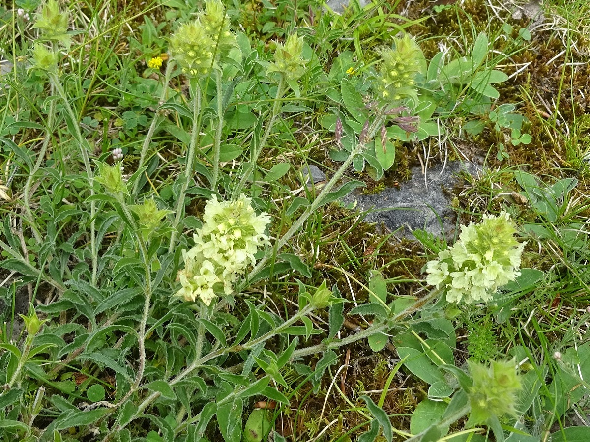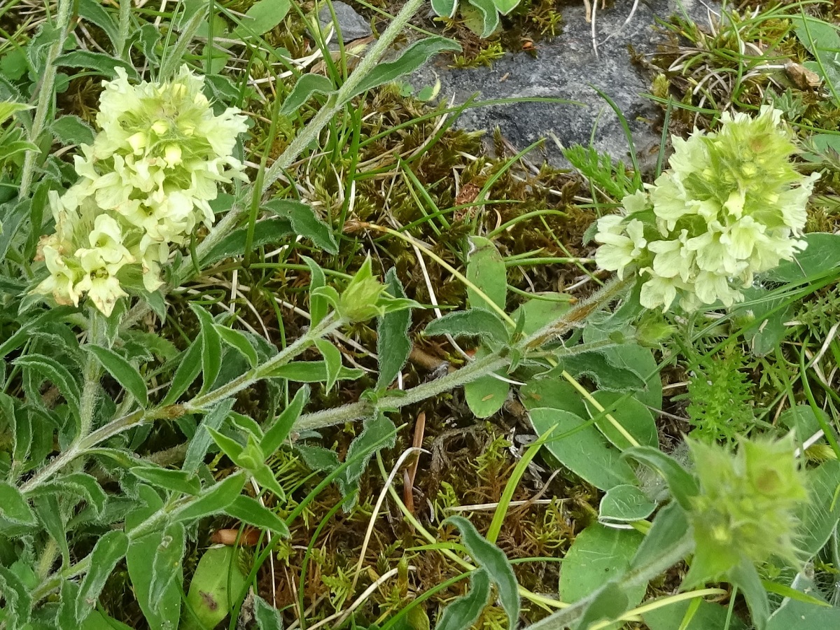 Ch – 1-3 dm – Feuilles opposées L de 1,5-3 cm ovales à lancéolées, dentées à l’apex – Fleurs étagées en tête ovoïde dense, corolle jaune pâle L de 7-10 mm, bractées épineuses > au calice