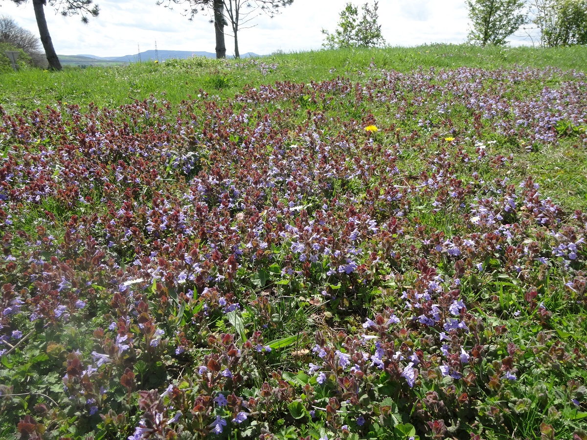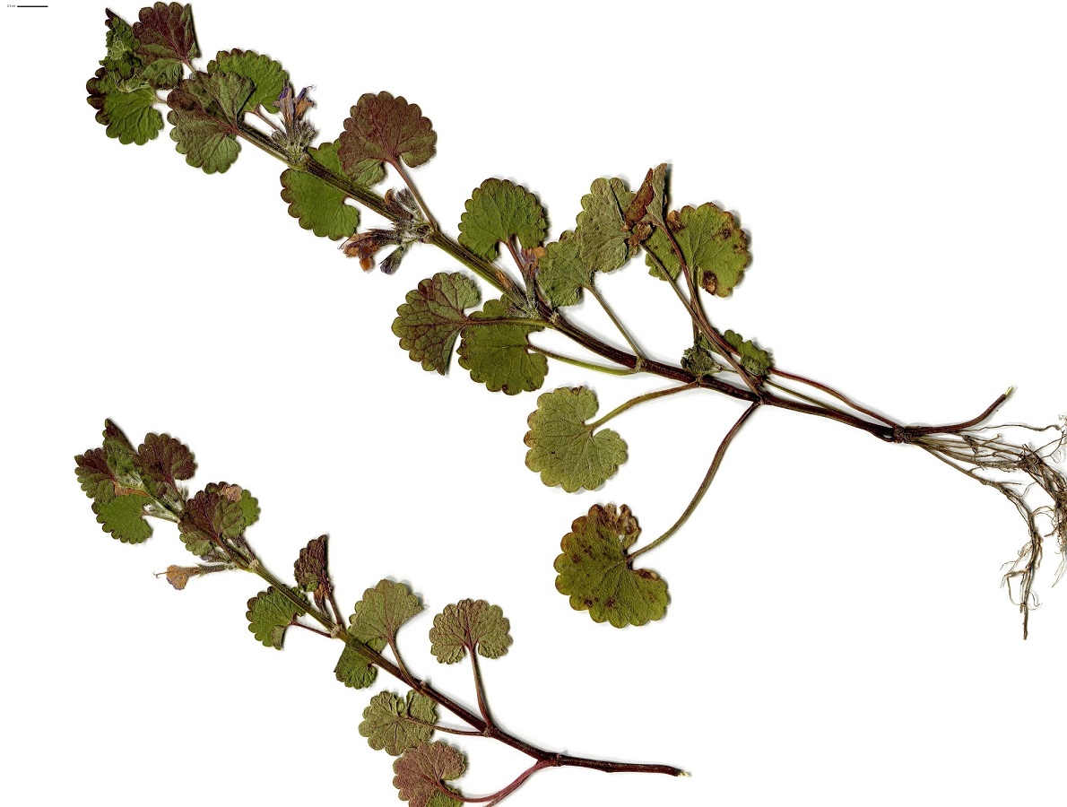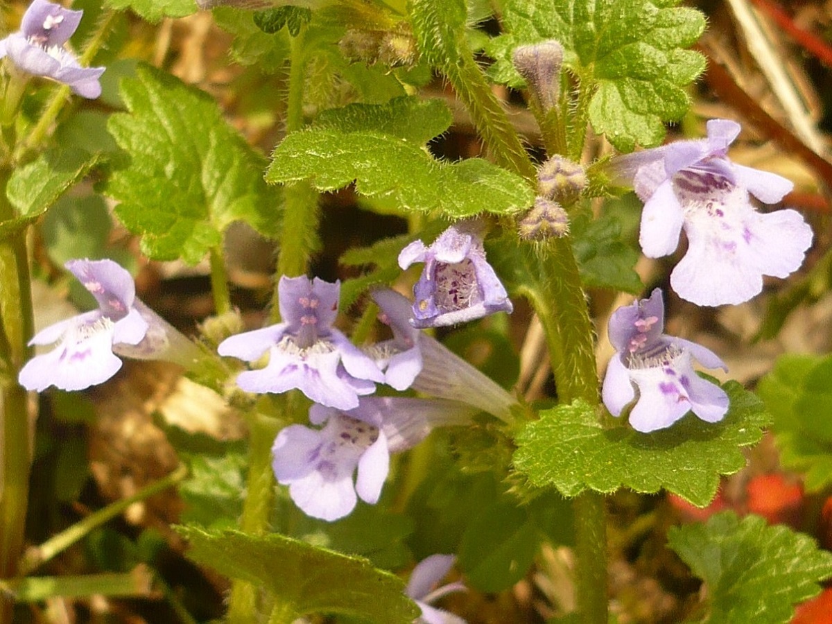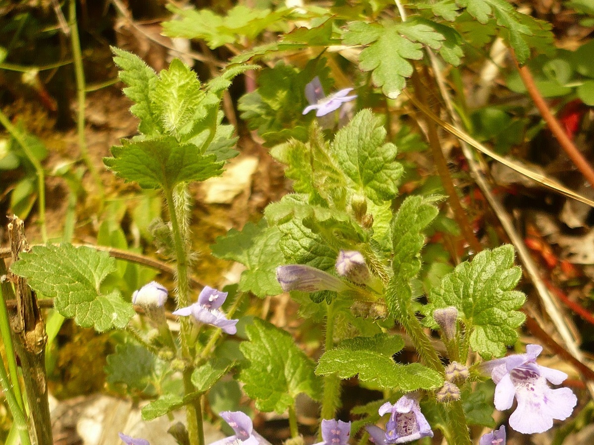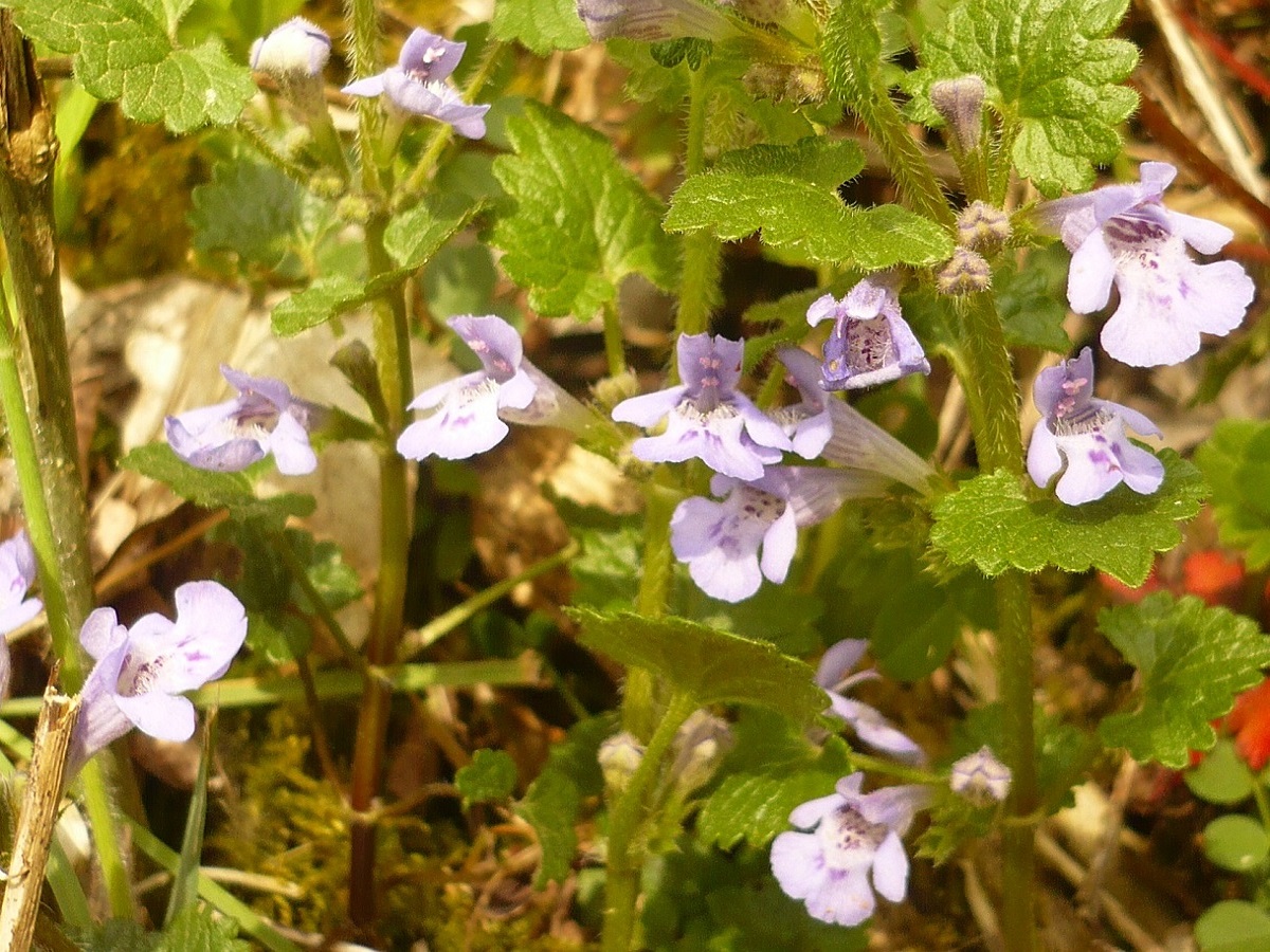 Hc – 1-4 dm – Tige rampante ± redressée, feuilles (L 1-3 cm) réniformes cordées crénelées, opposées, à long pétiole – Fleurs en épi lâche, corolle L de 1,5-2 cm violet clair tachée de pourpre