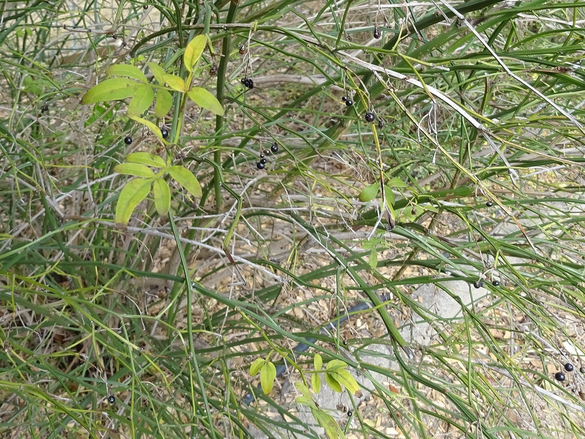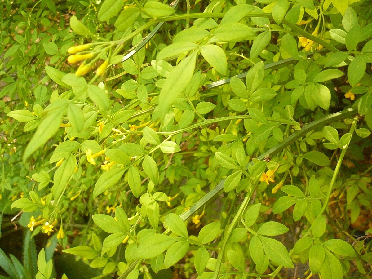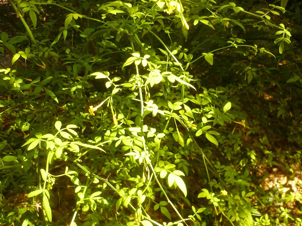 Ch/NPh – 0,4-1,2 m – Feuilles à 3-7 folioles L de 1-2 cm, alternes – Cymes de 1-5 fleurs jaunes, corolle de Ø 12-15 mm à 5-6 lobes obovales-oblongs – Baie de Ø 7-9 mm noire