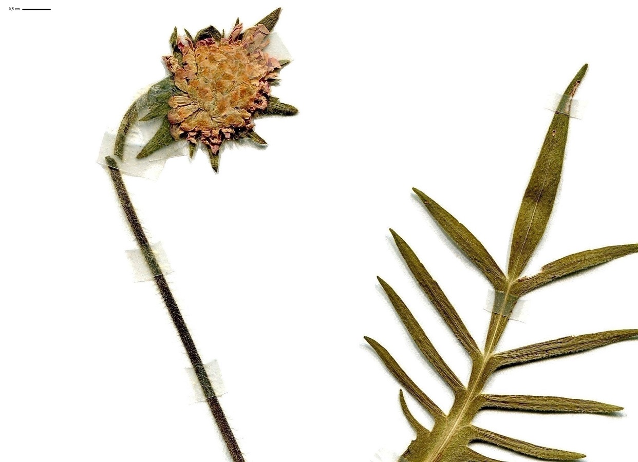 Hc – 3-6 dm – Tige et feuilles velues grisâtres, les > pennées à 5-13 segments étroits – Capitule de Ø 3-4 cm, fleurs L de 4-7 mm bleu violacé terne, les externes rayonnantes